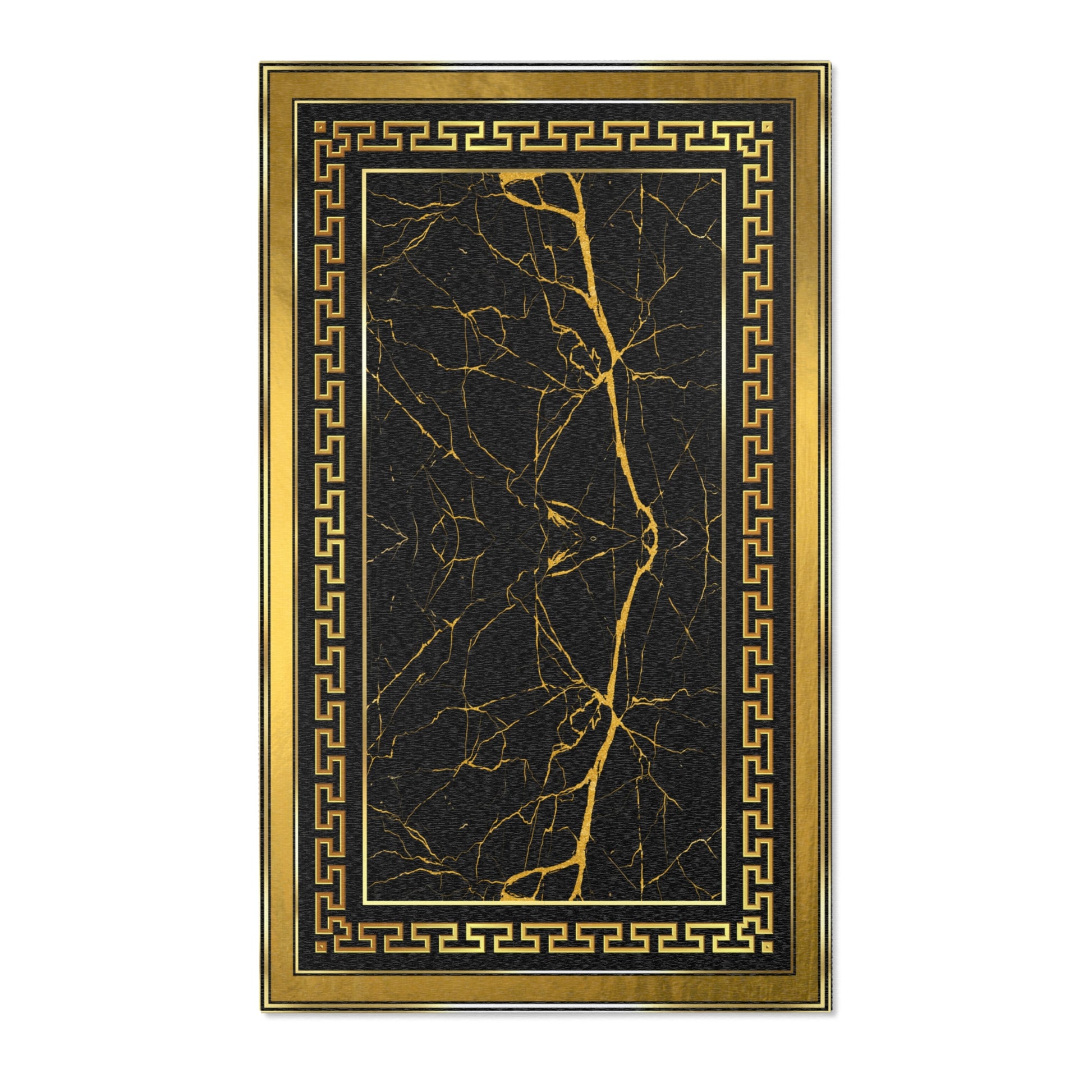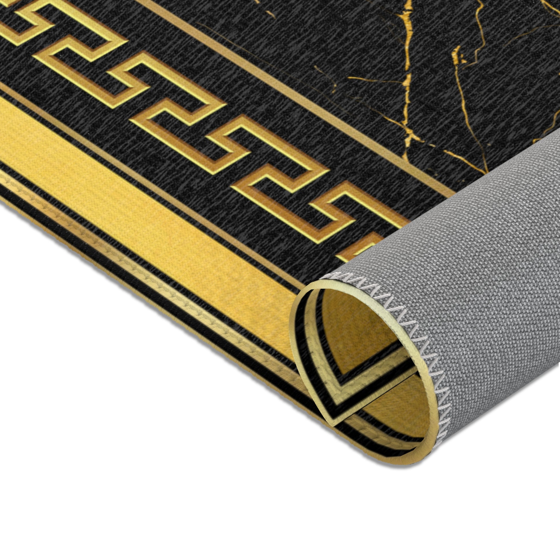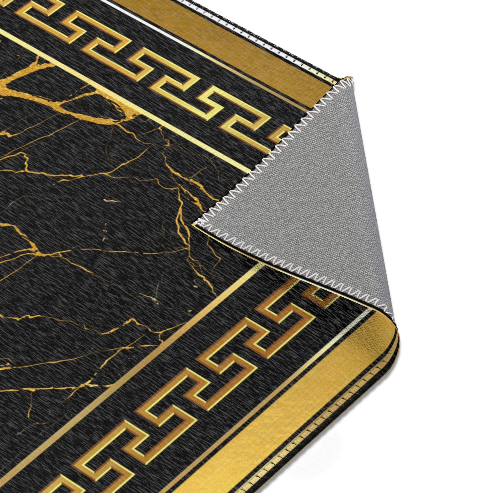 Black Gold Greek Keys Gold Trim Runner Rug