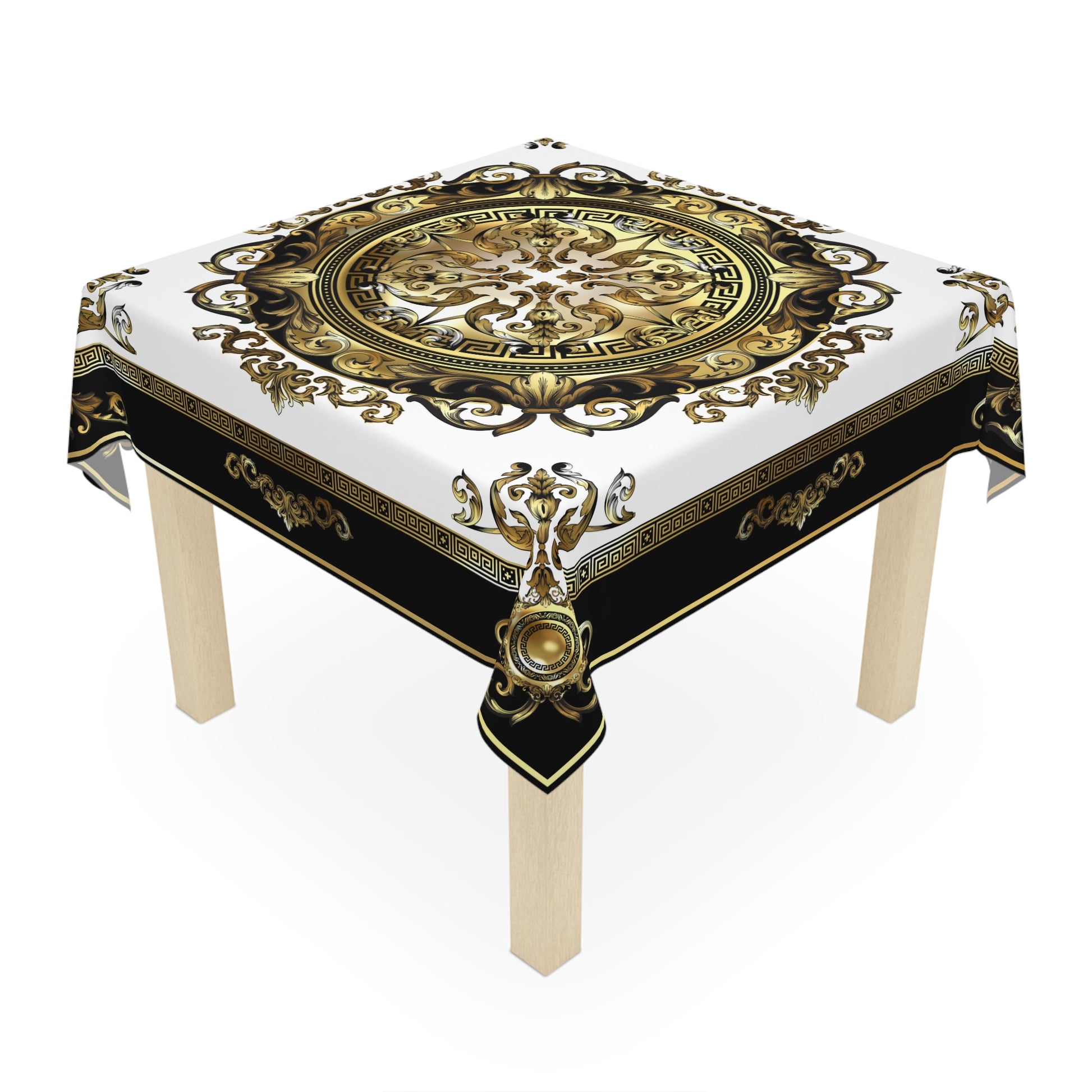 Uplift any home's aesthetics with this personalized tablecloth. Measuring in at 55.1" by 55.1", this personalized table cloth is a full-print product meaning it will display your custom designs on the entirety of the cloth's surface. What's more, the 100% polyester fabric construction makes it effortless to maintain like new. .: One size (55.1" × 55.1") (140cm × 140cm) .: 100% polyester .: One-sided print .: Soft and light