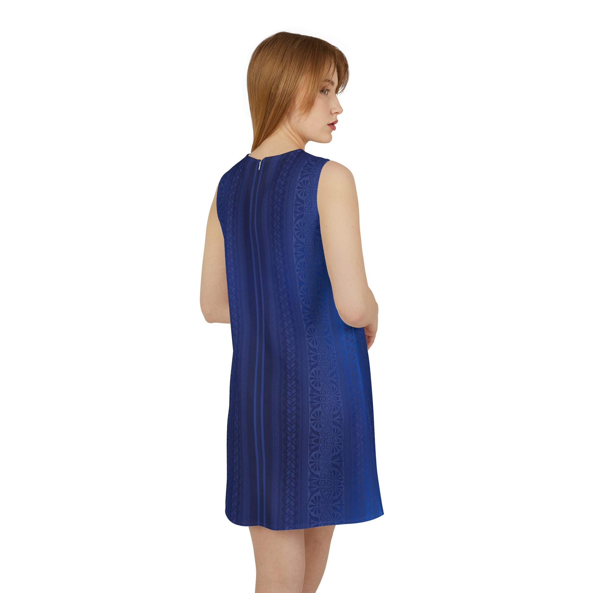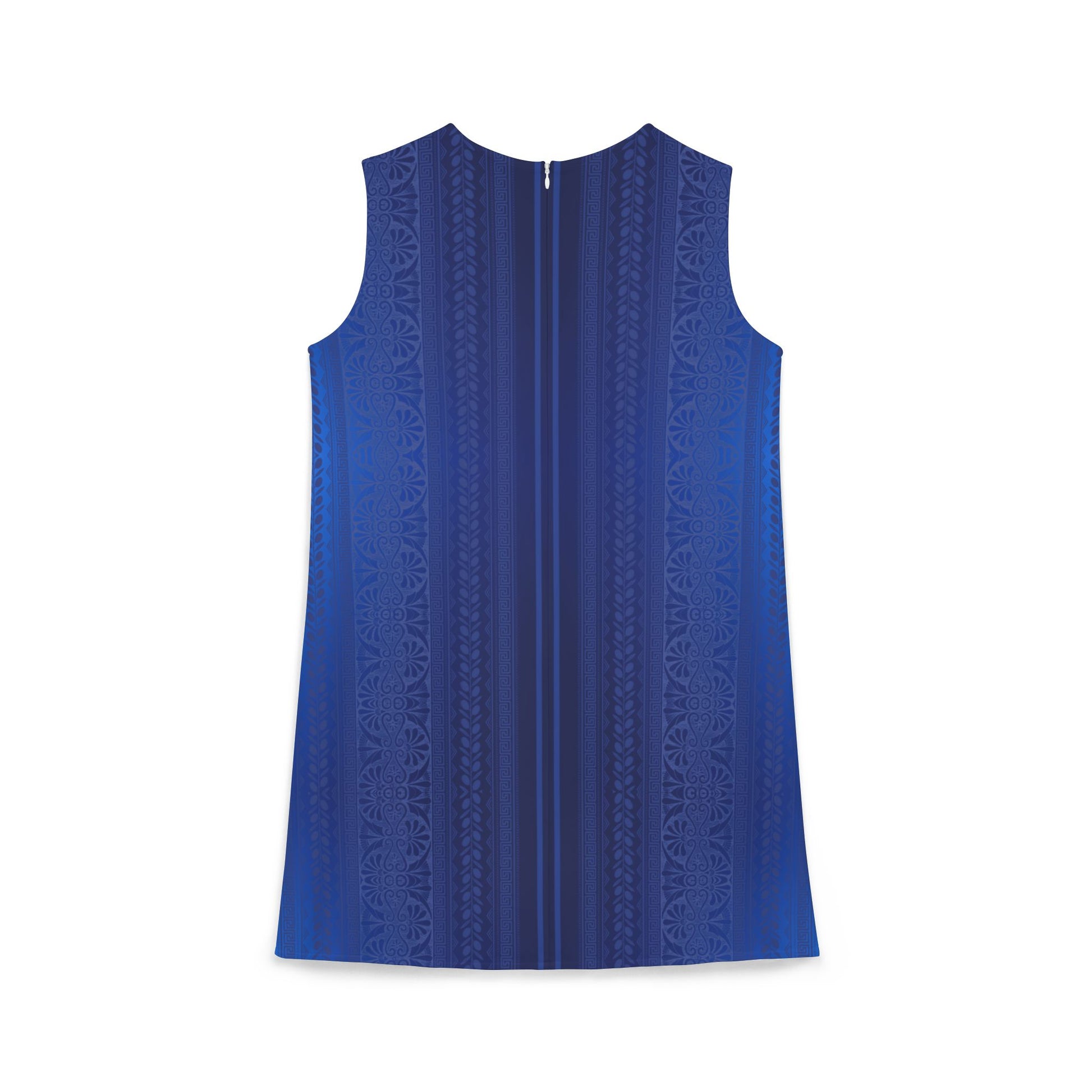 Blue Ornate Greek Key A-line Sleeveless Dress