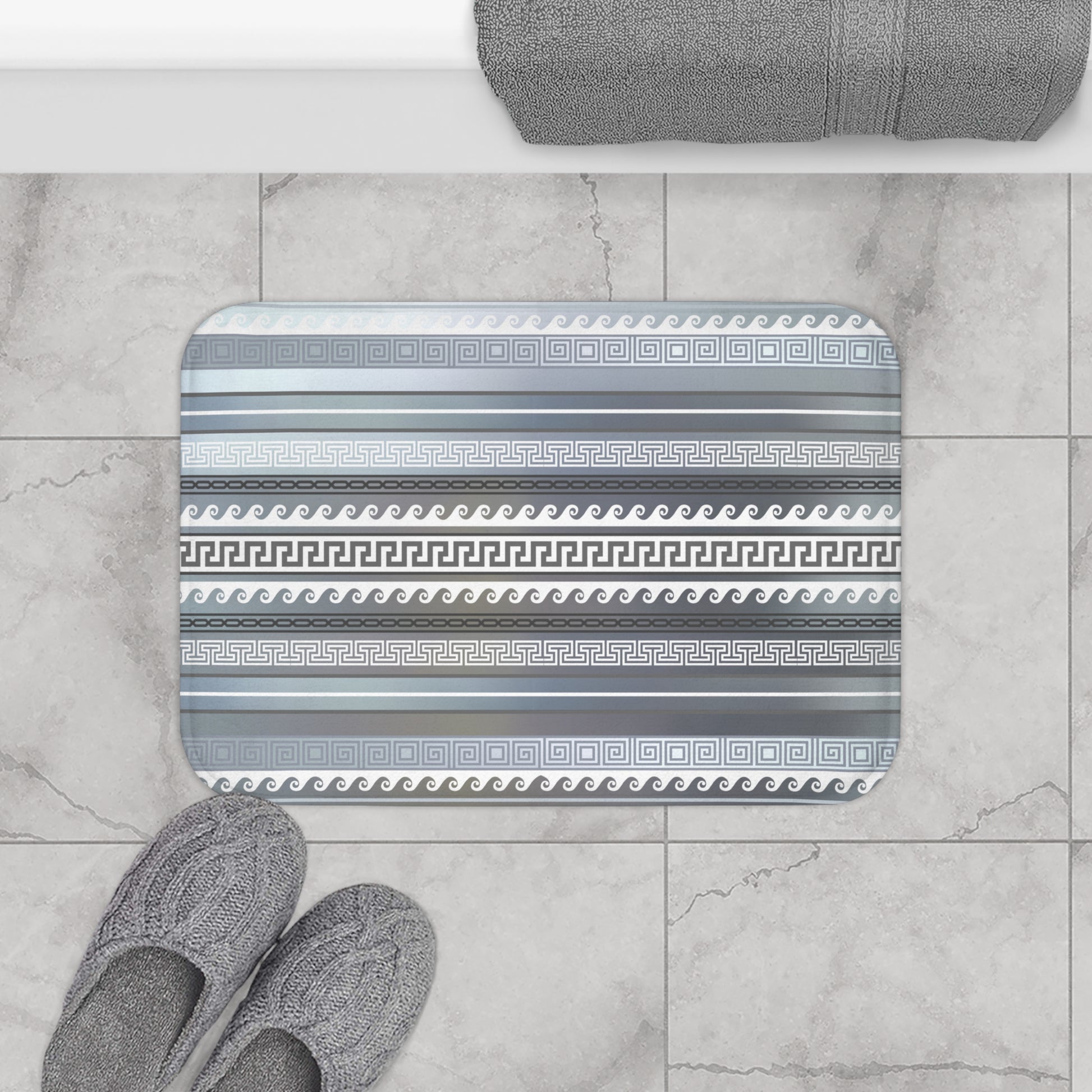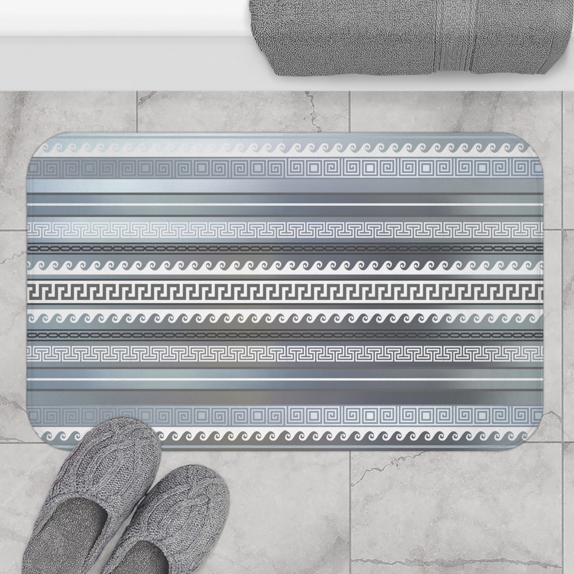 Blue White Gray Greek Key Bath Mat
