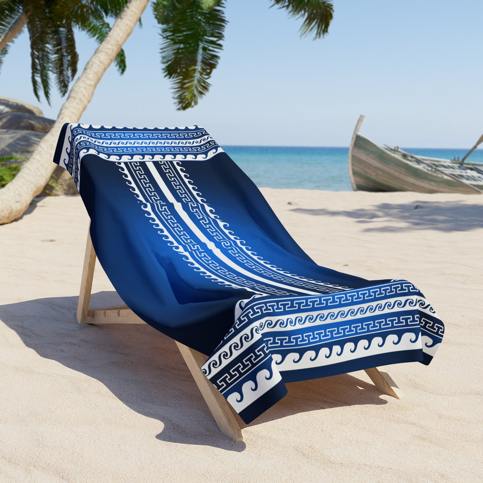 Blue White Greek Key Beach Towel