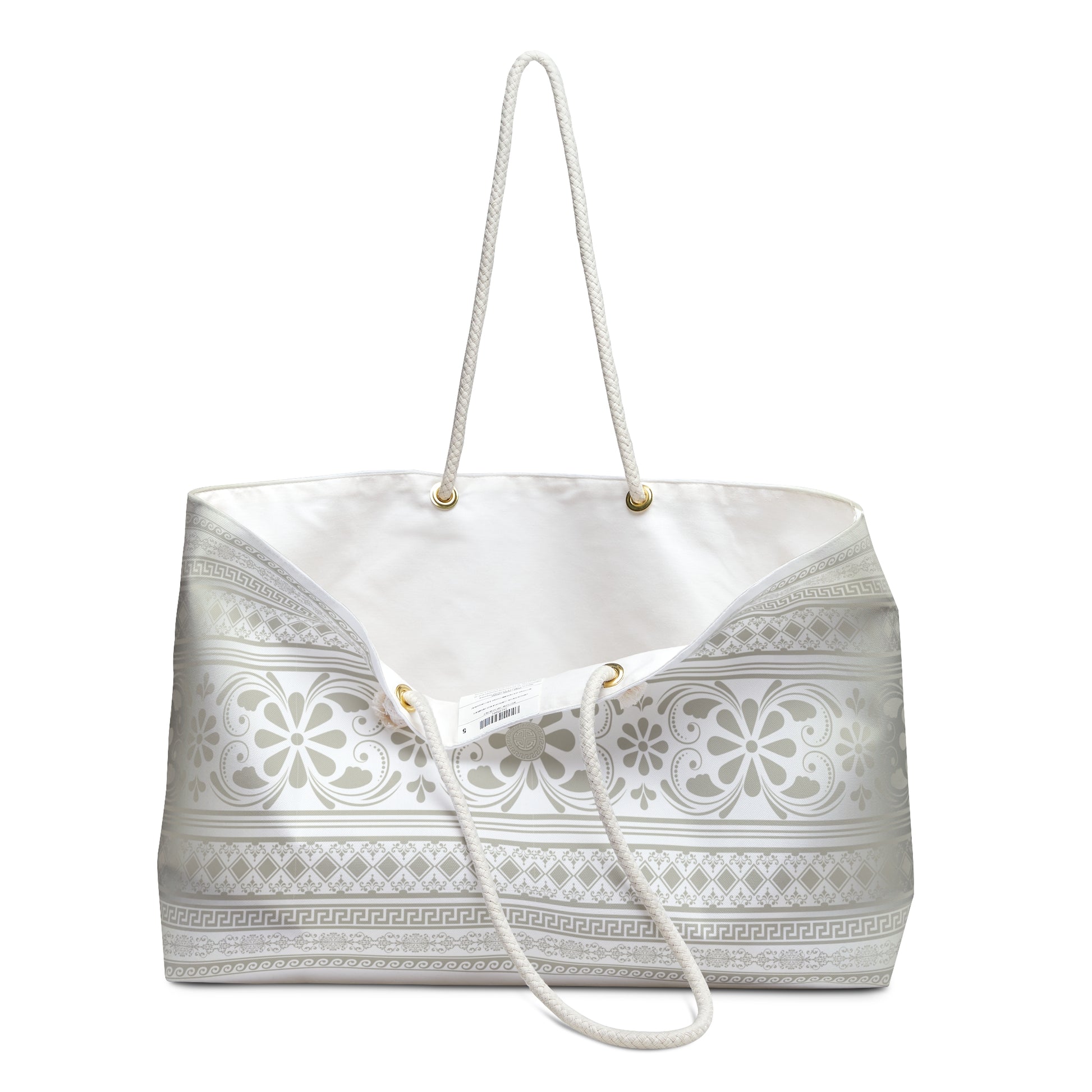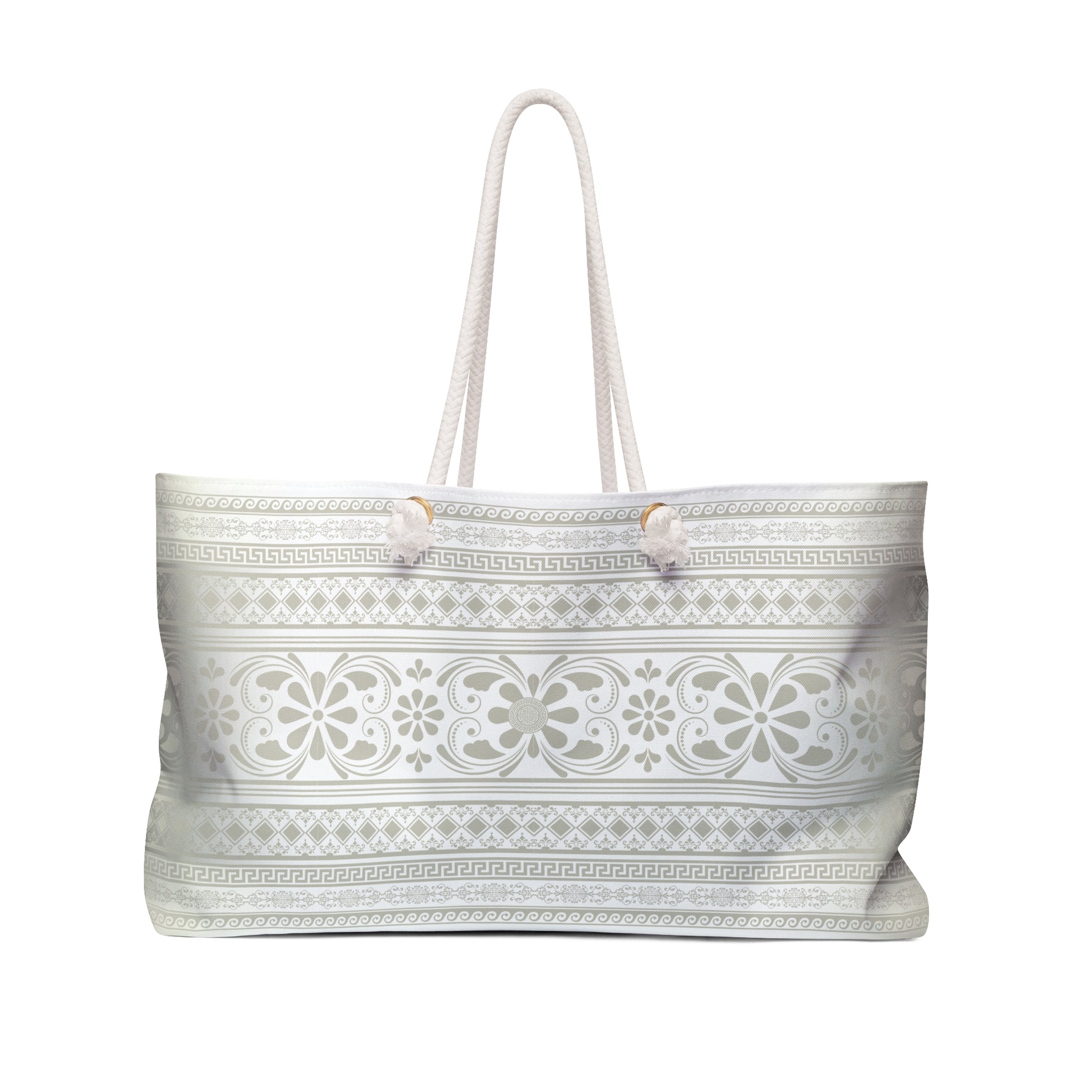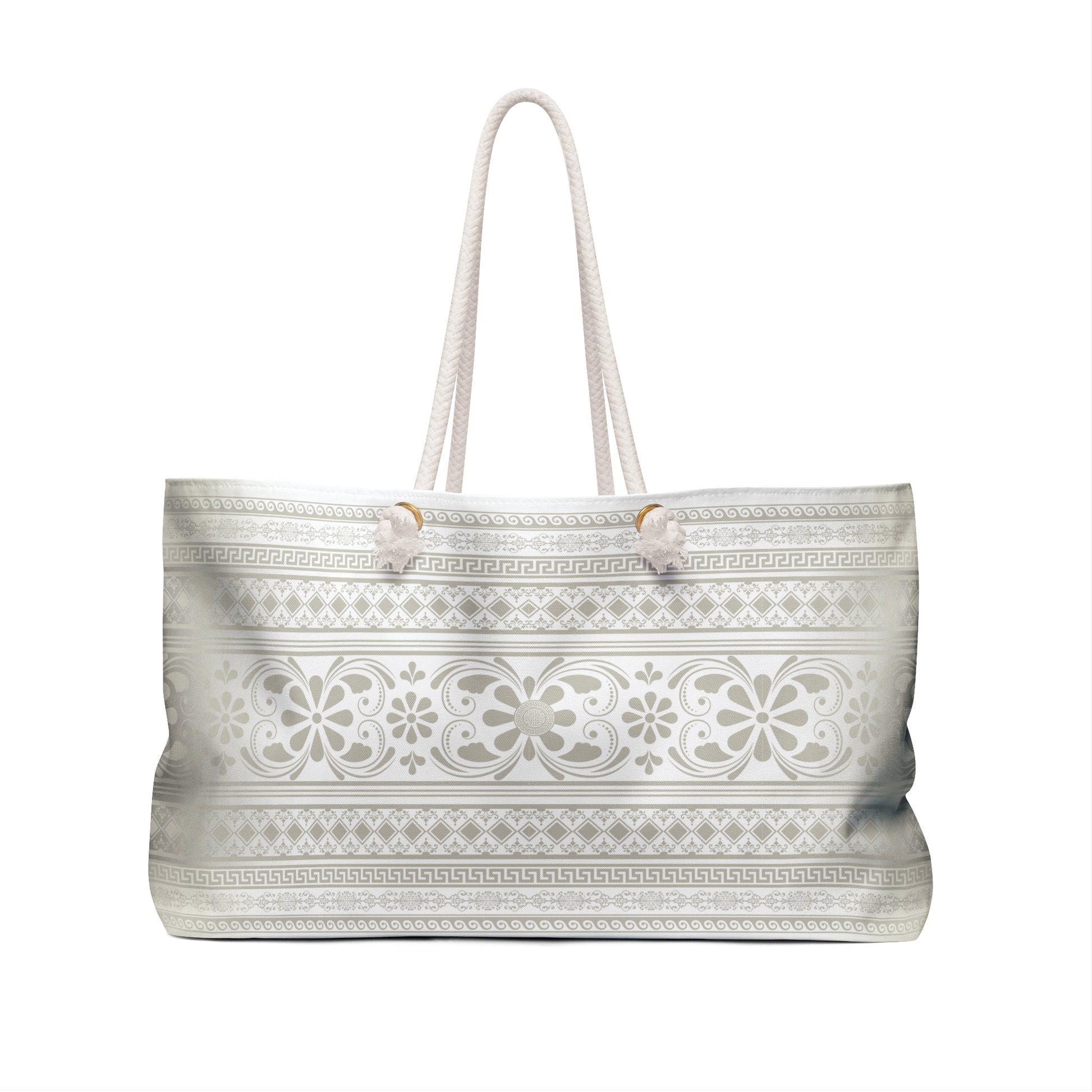 Cream Filigree Greek Key Weekender Bag