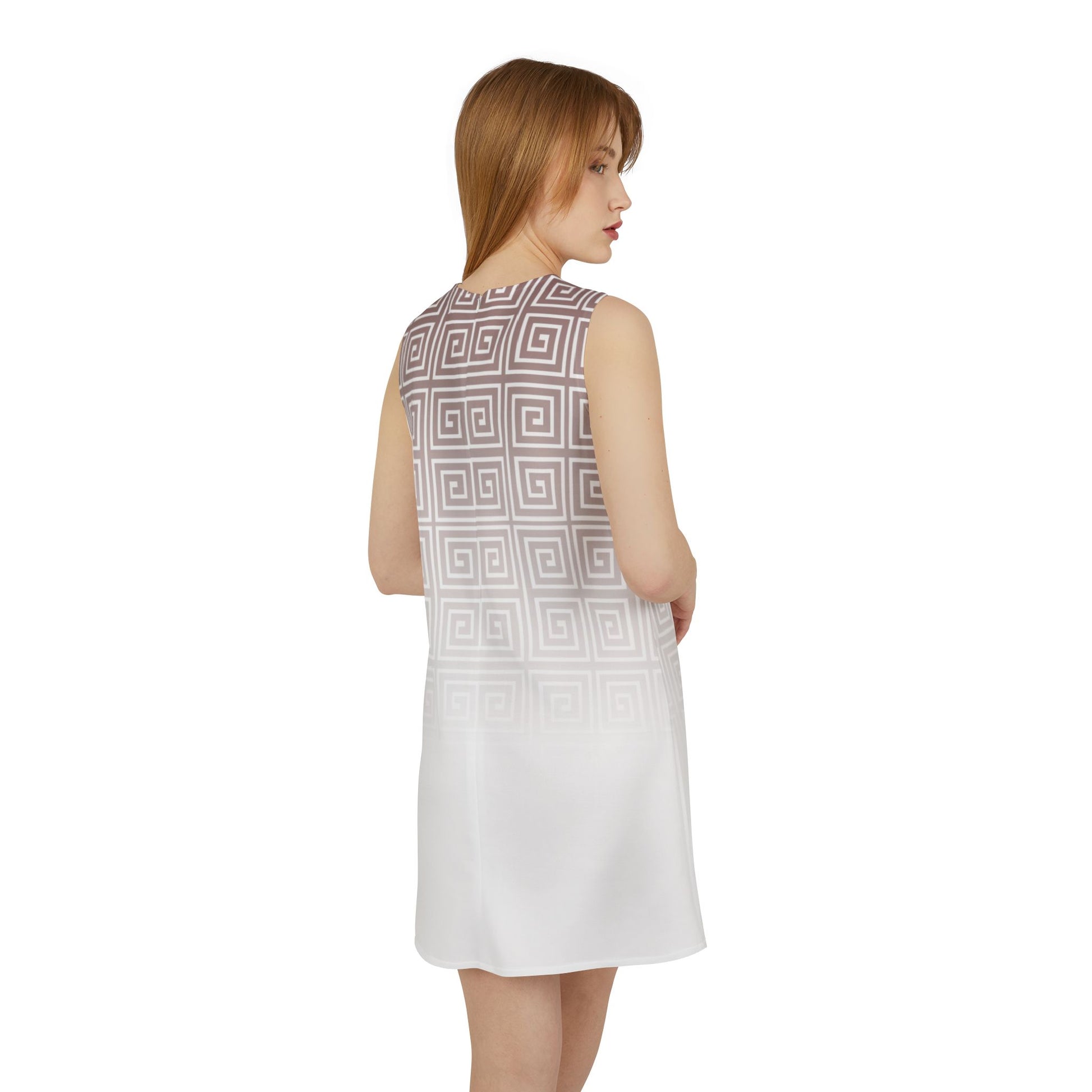 Dark Peach White Greek Key Black A-line Sleeveless Dress
