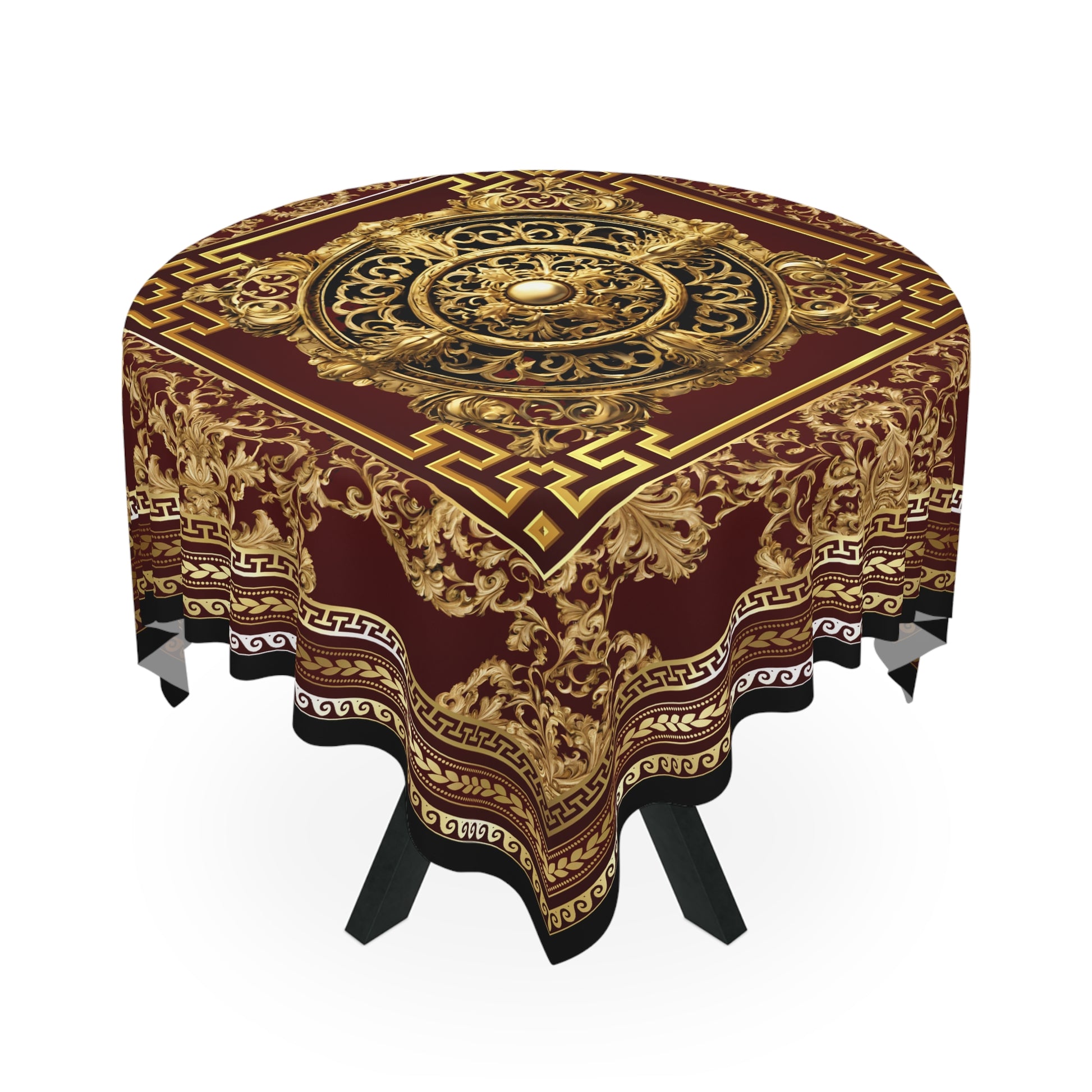Gold Maroon Greek Key Ornate Baroque Tablecloth