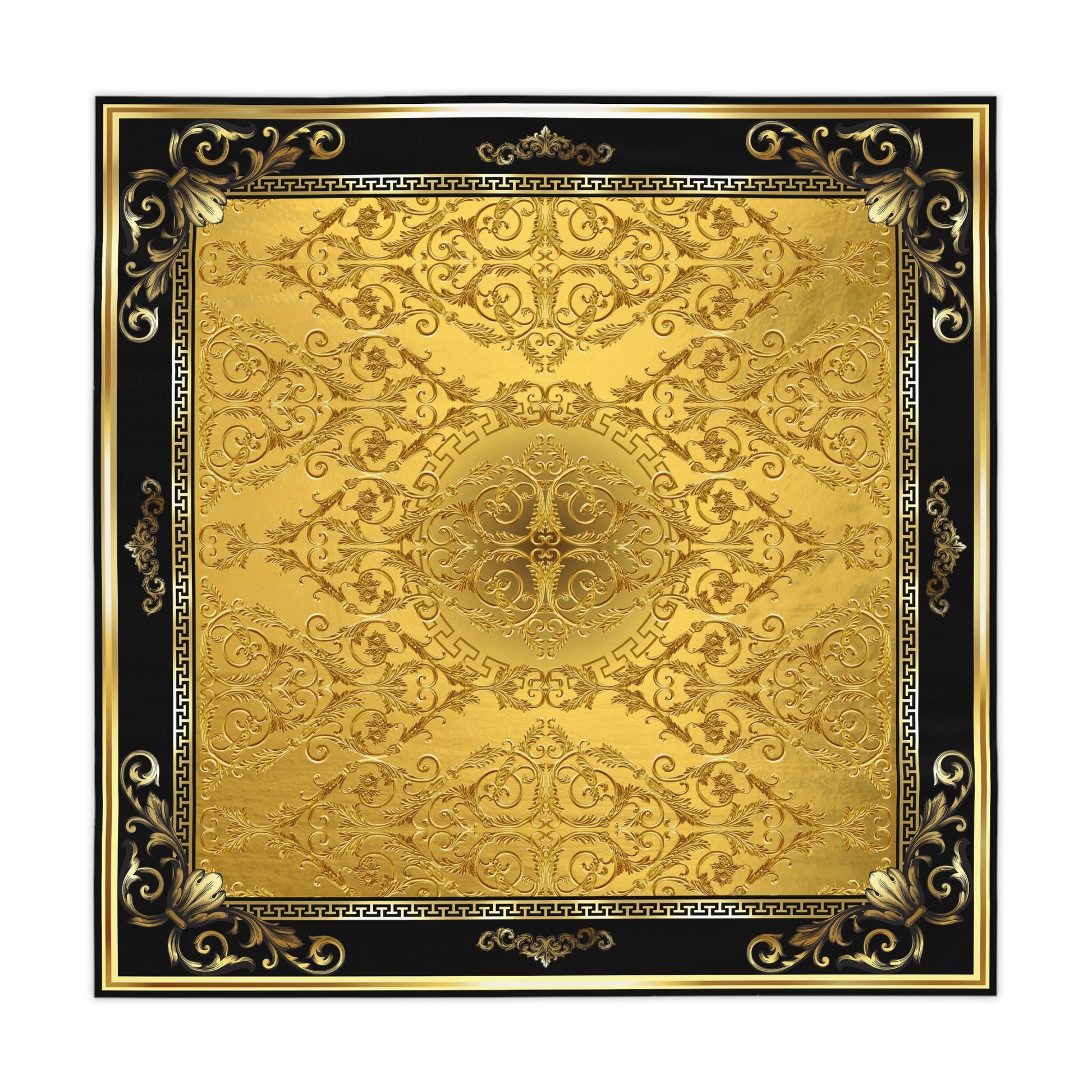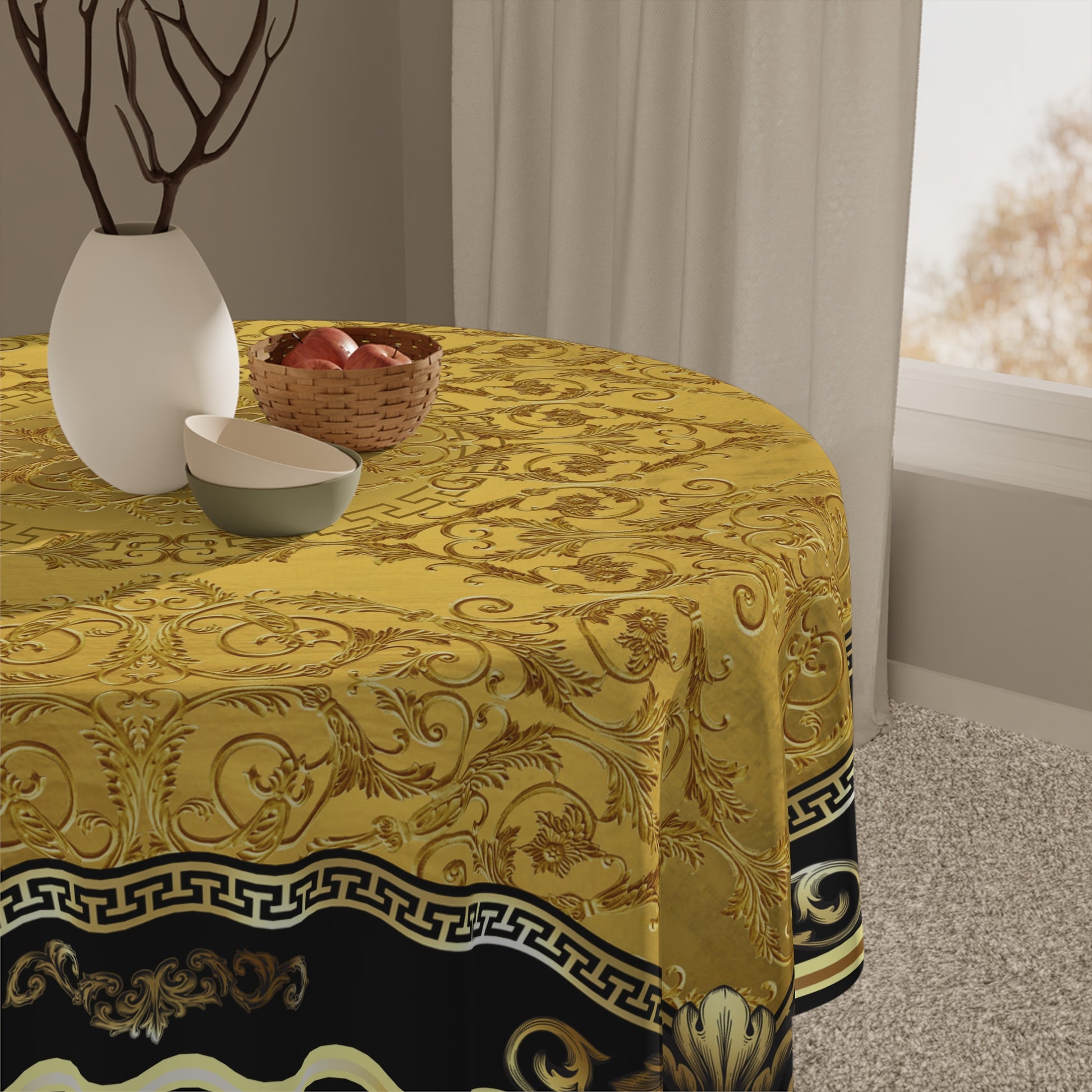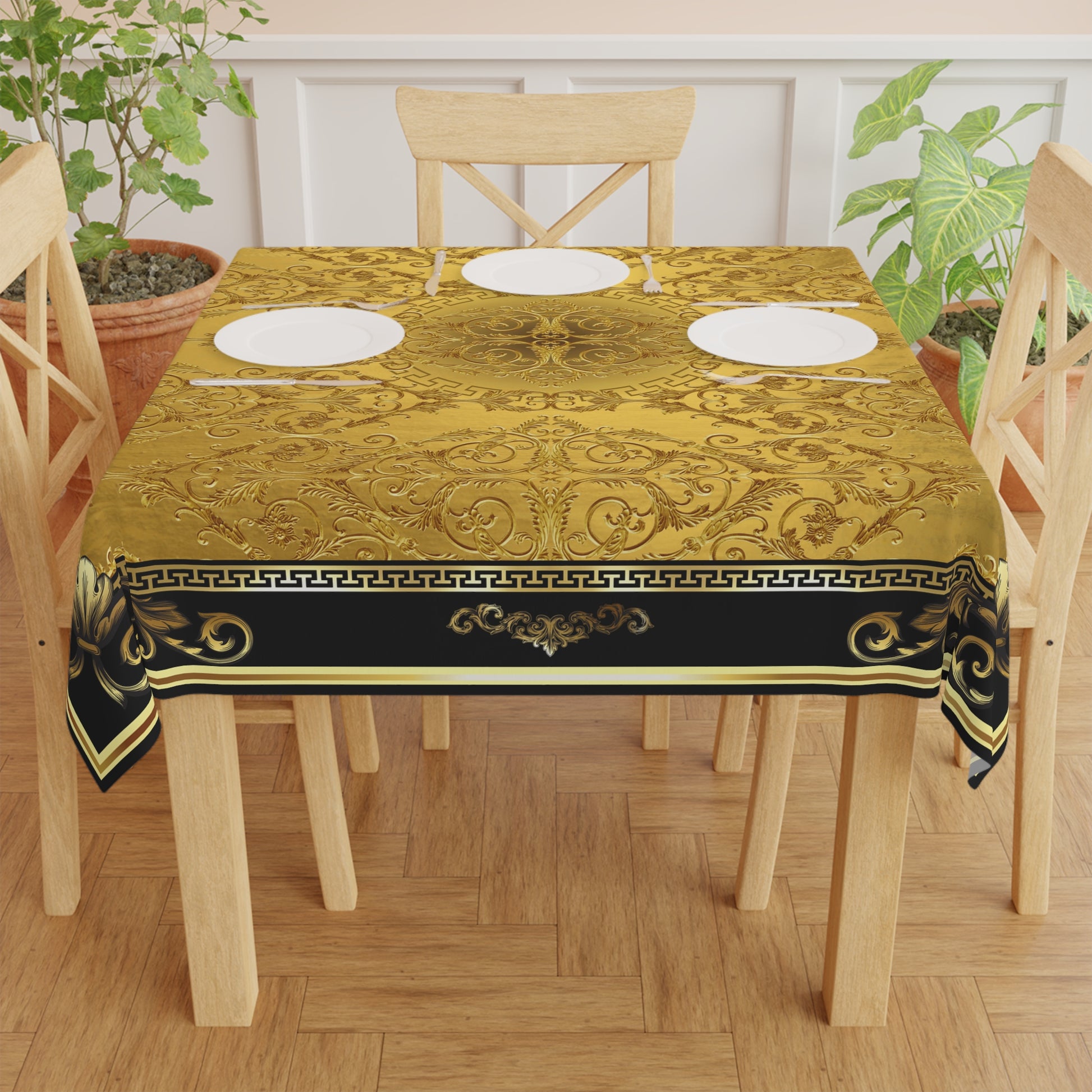 Gold Ornate Baroque Greek Key Black Tablecloth
