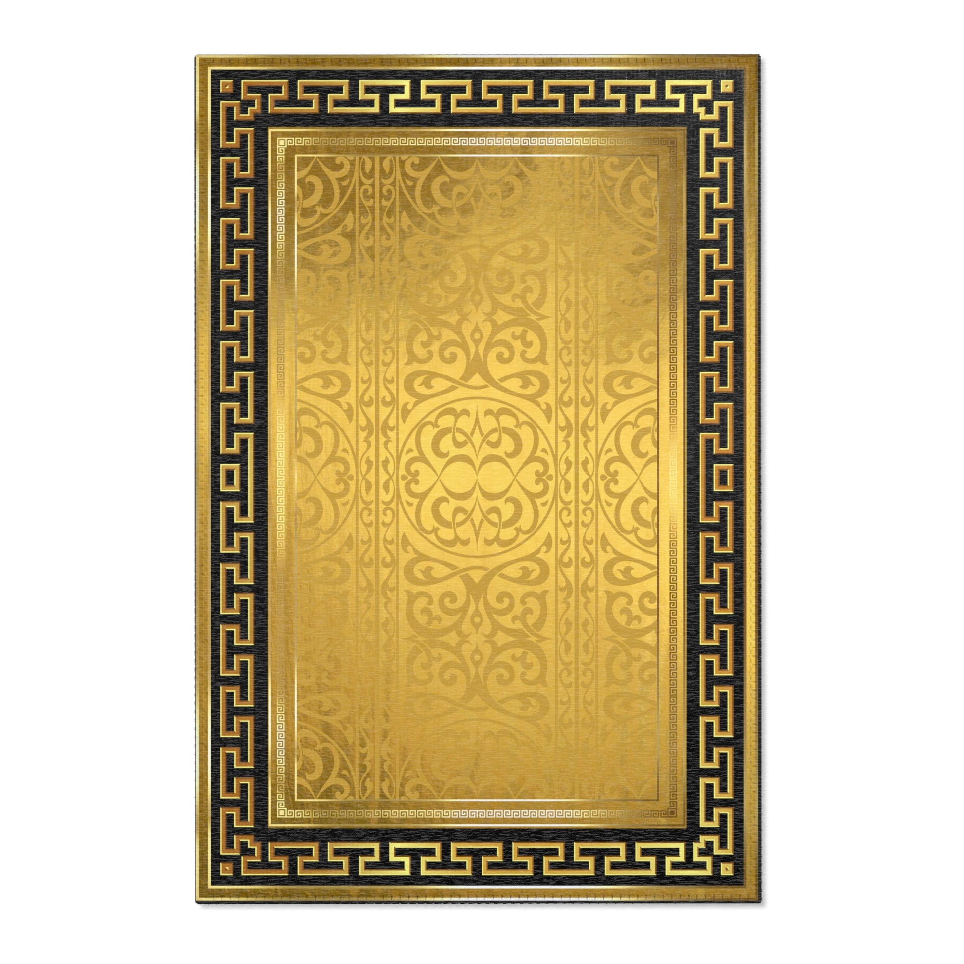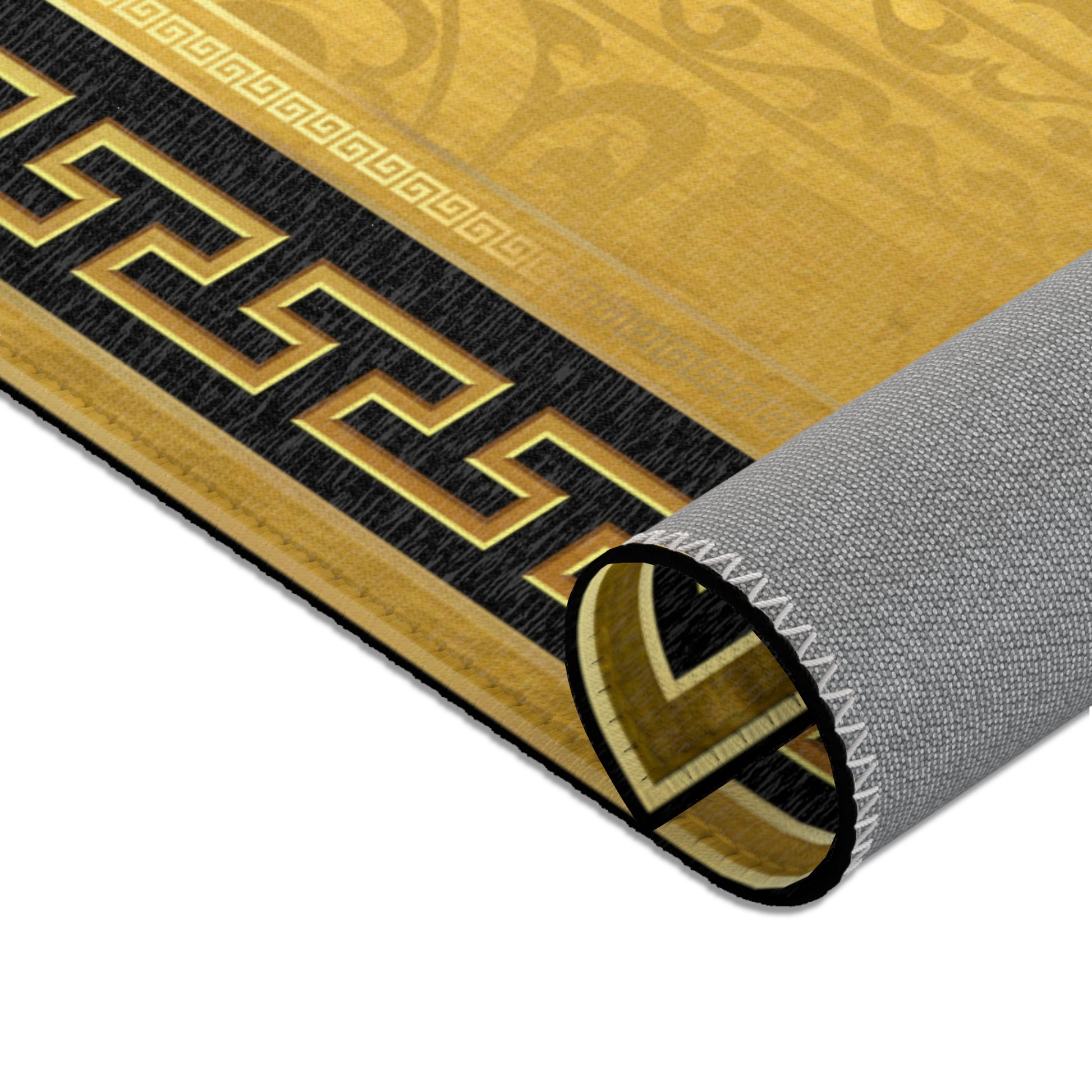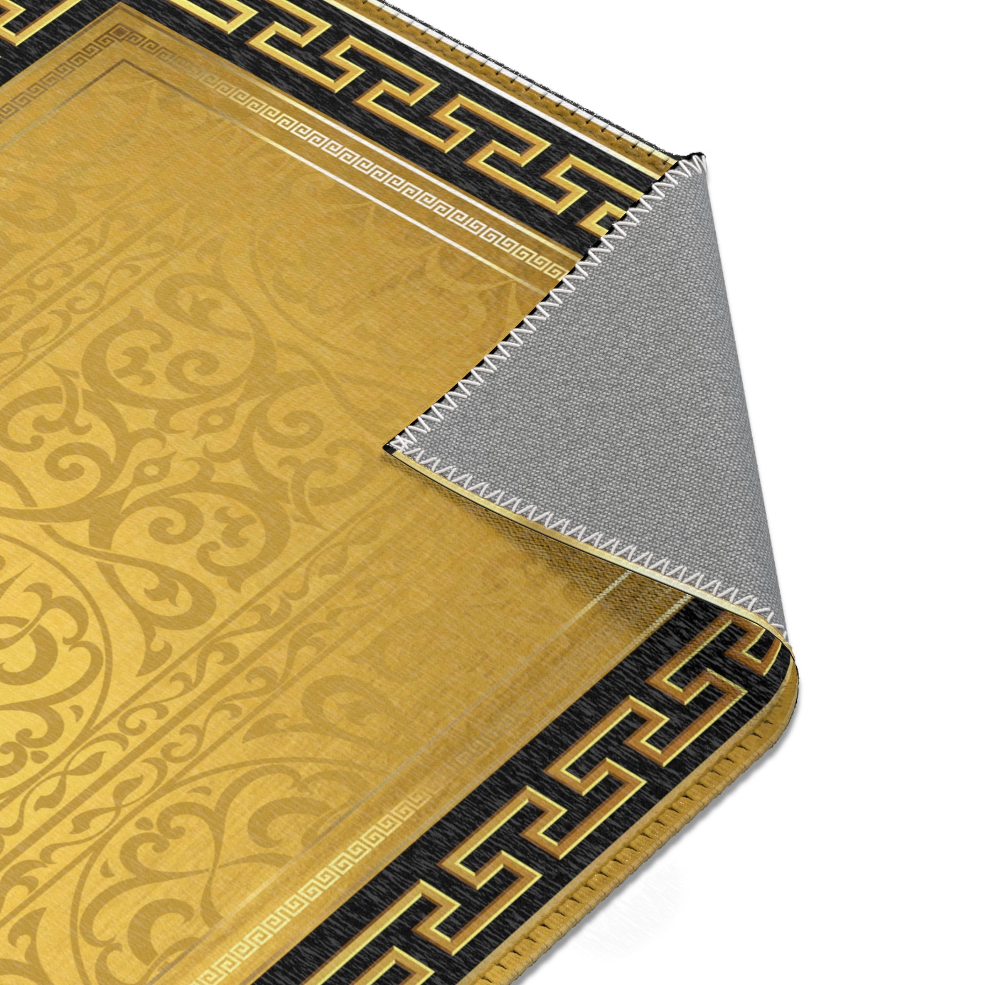 Gold Ornate Greek Keys Black Trim Area Rugs