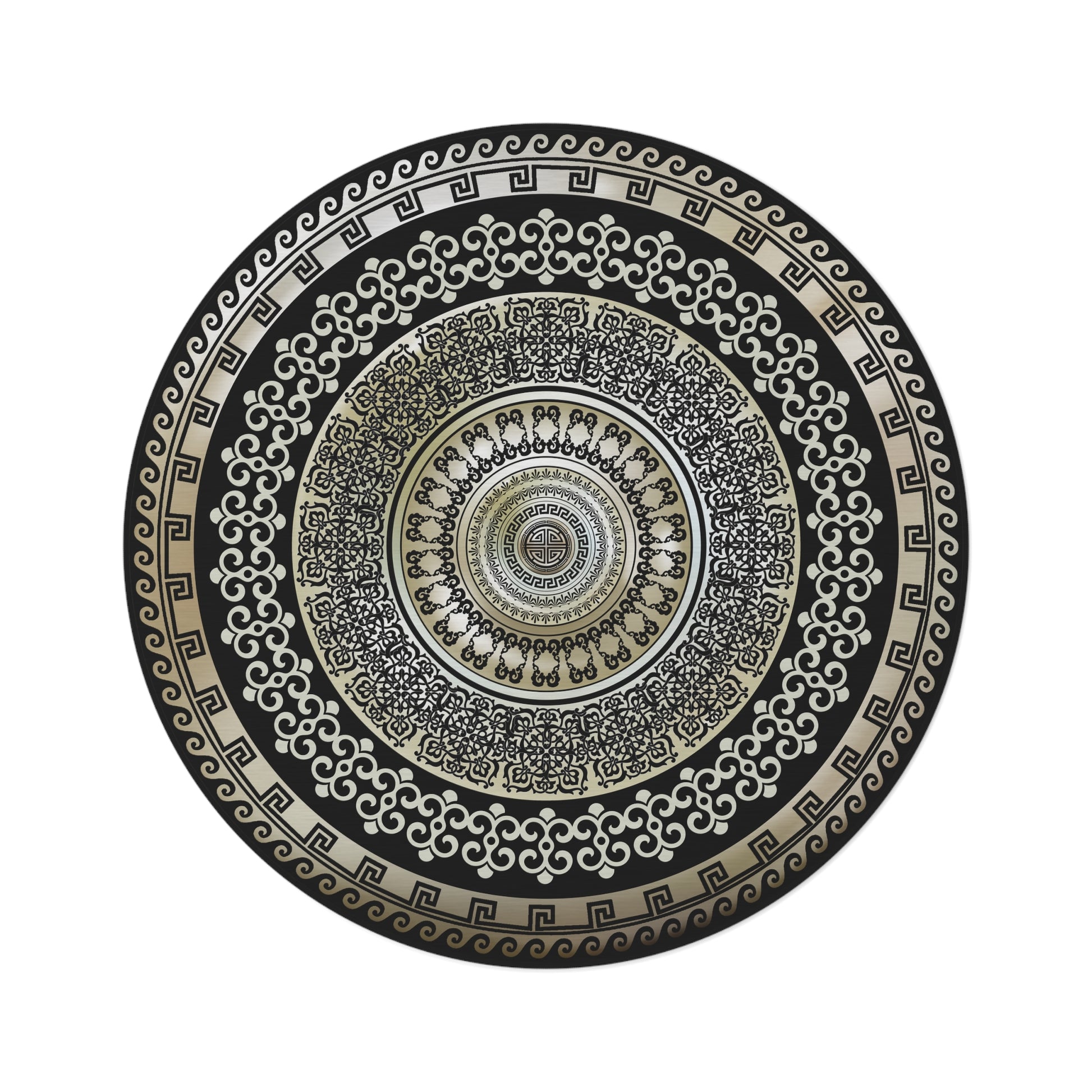 Greek Key Black Beige Ornate Baroque Round Rug