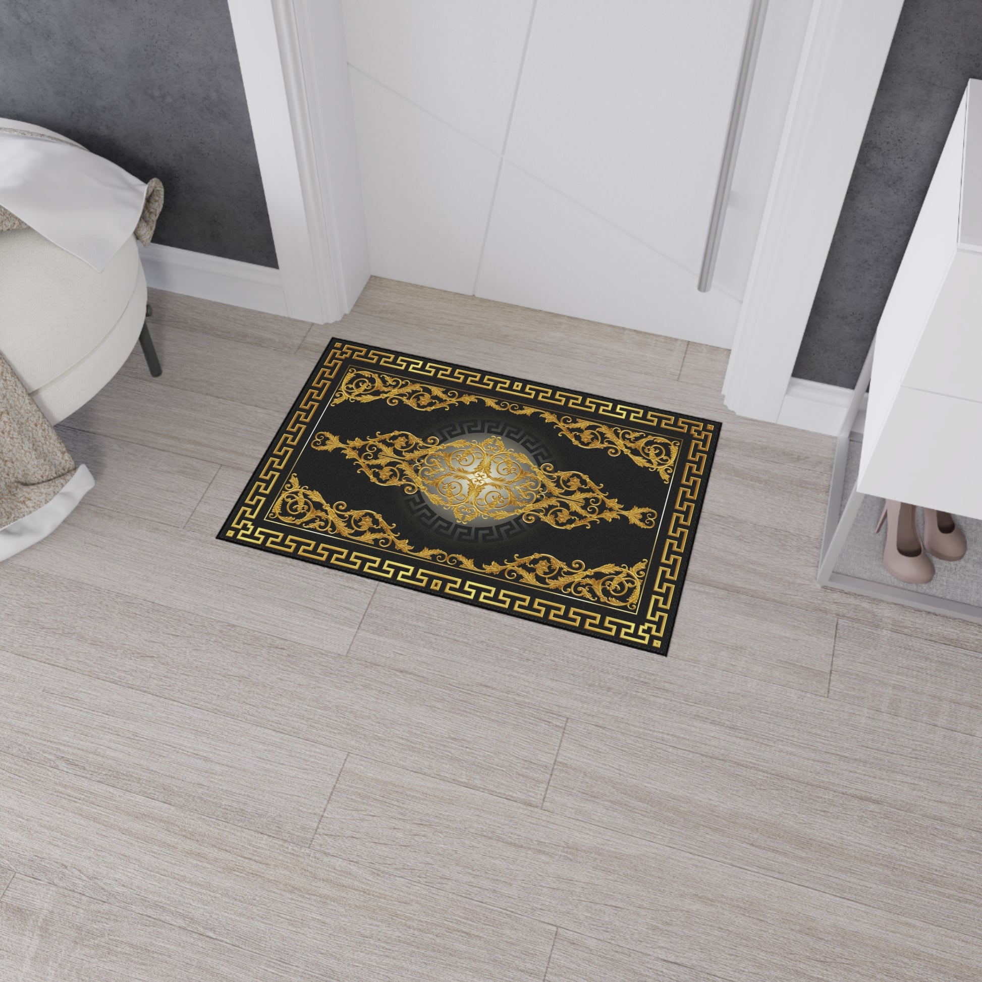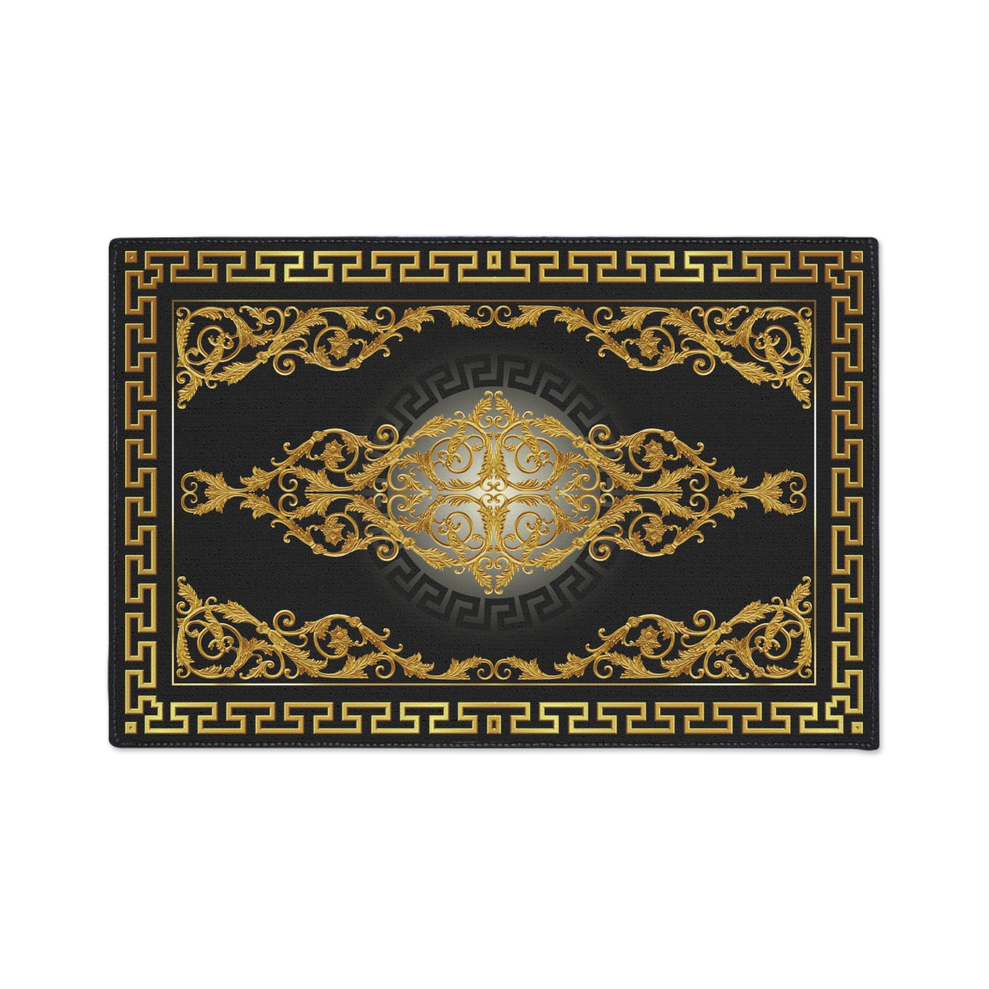 Greek Key Black Gold Baroque Heavy Duty Floor Mat