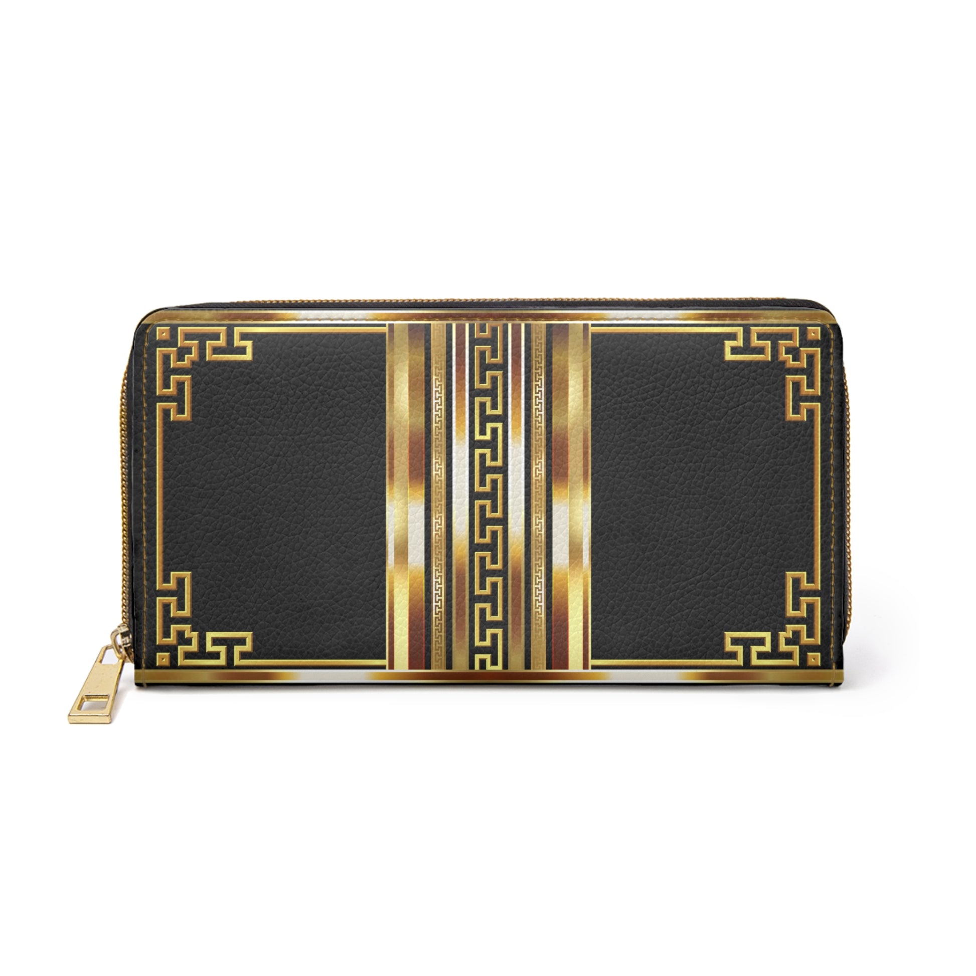 Greek Key Black Gold Zipper Wallet