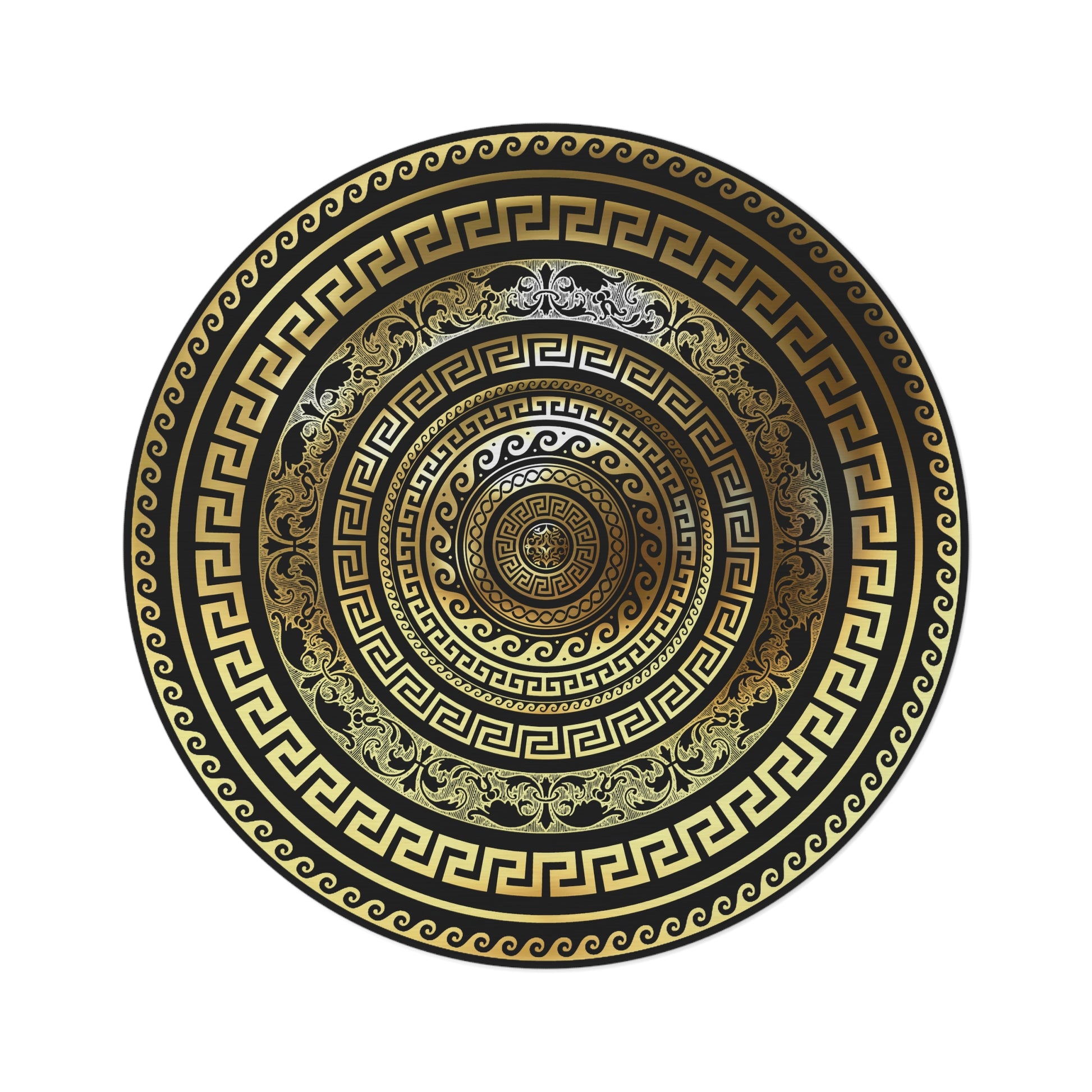 Greek Key Black Gold Round Rug