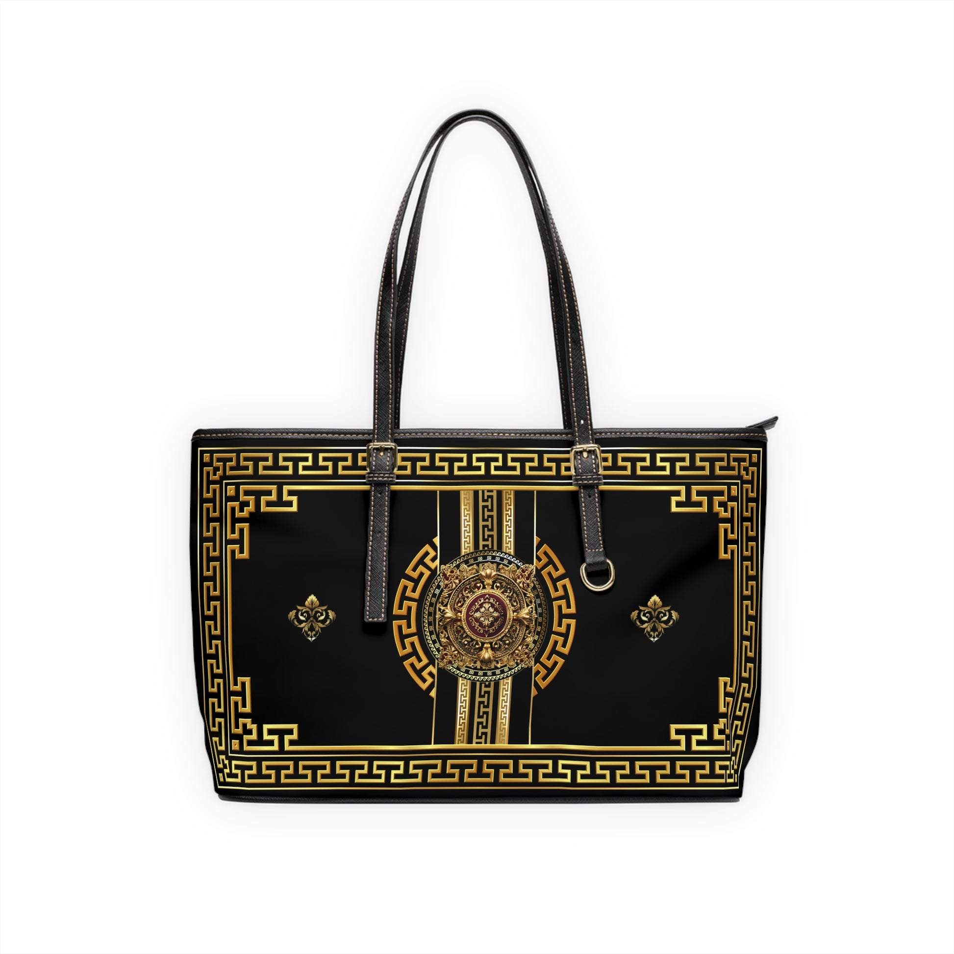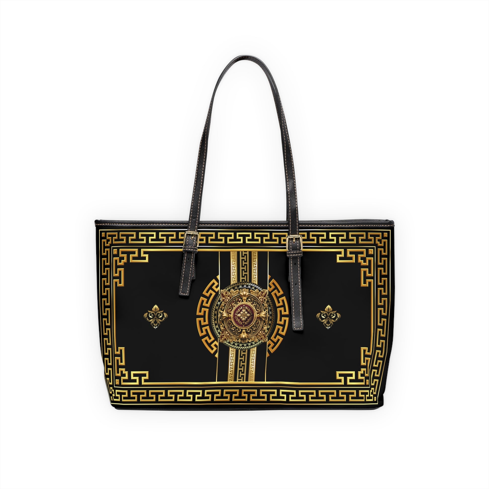 Greek Key Gold Black Medallion PU Leather Shoulder Bag