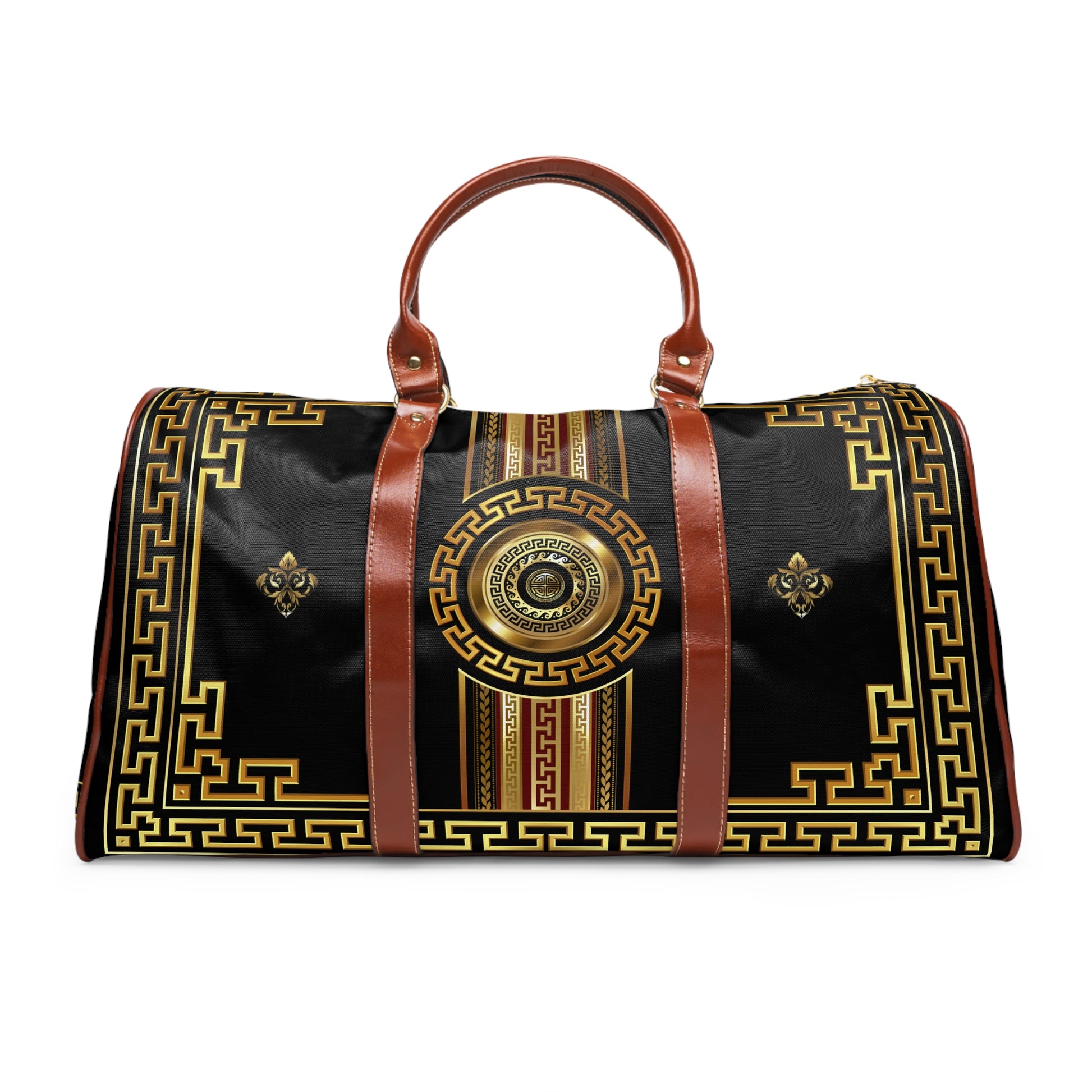 Greek Key Gold Black Medallion Waterproof Travel Bag