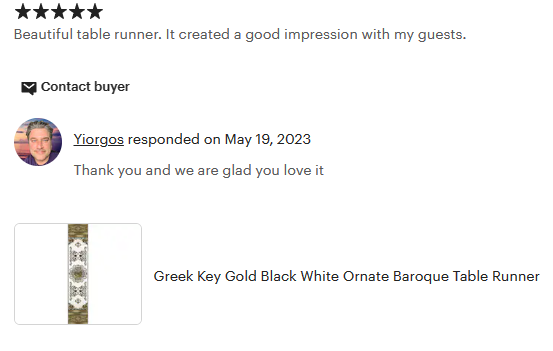 Greek Key Gold Black White Ornate Baroque Table Runner