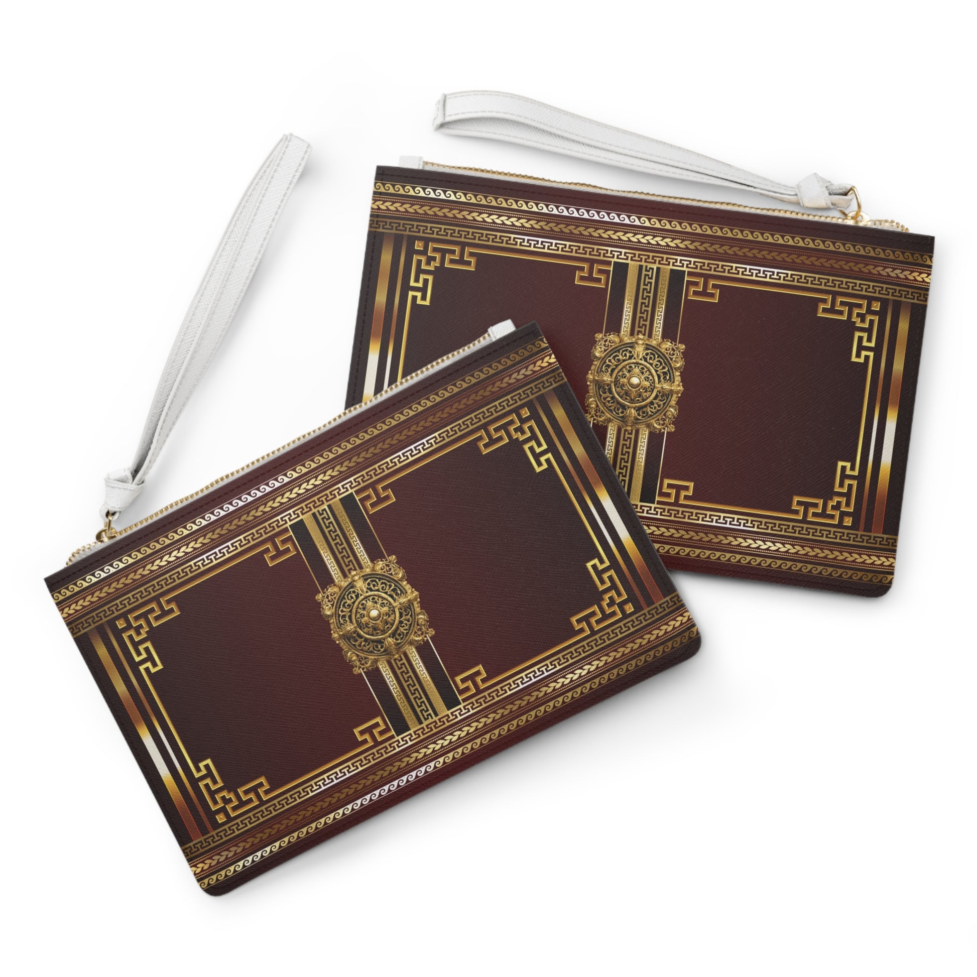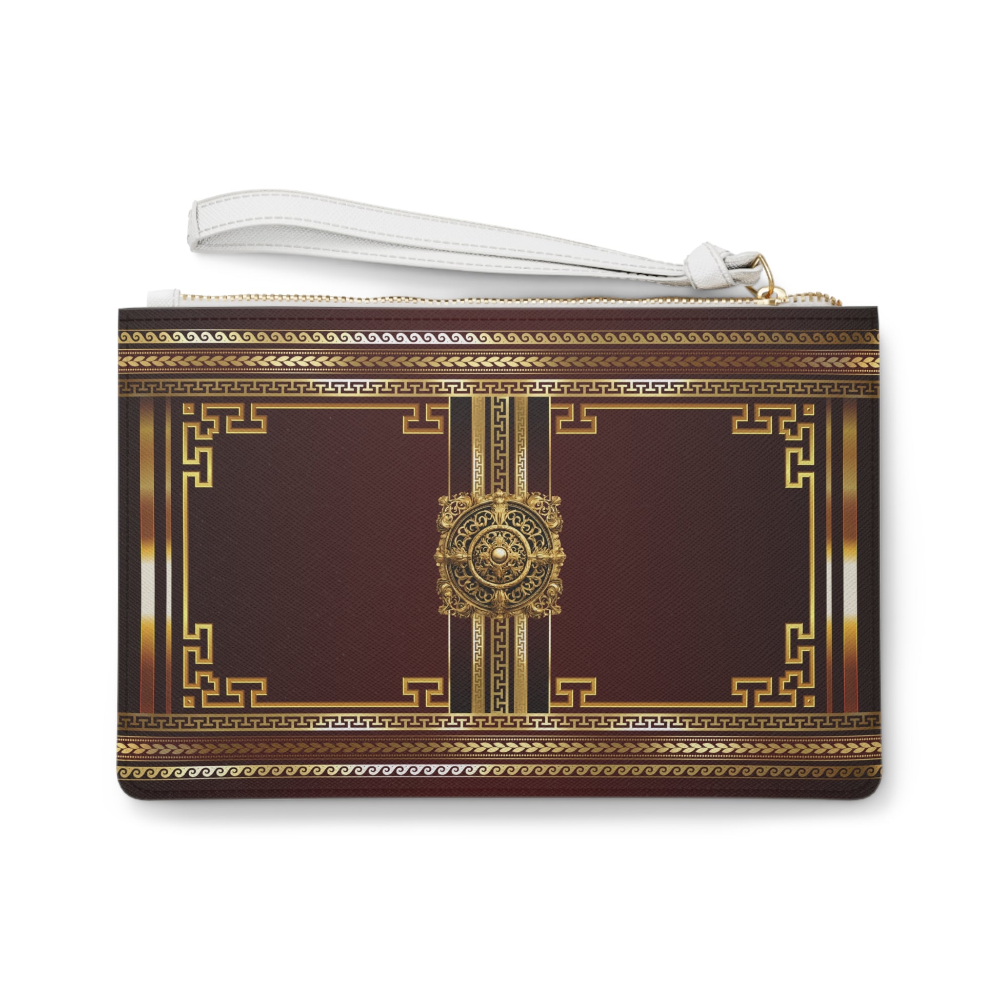 Greek Key Gold Maroon Vegan Leather Clutch Bag