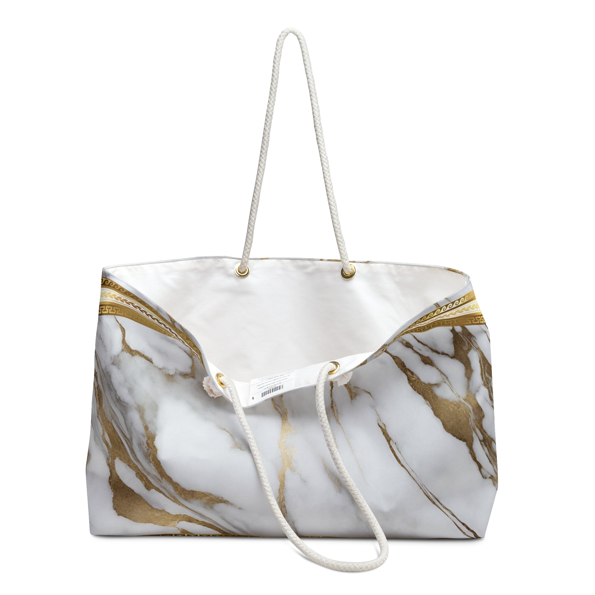 Our oversized Weekender Tote is perfect for your weekend at the beach or in town. The wide-mouthed, durable bag holds a generous amount of personal items and is easily held by its thick rope handles. .: 100% Spun Polyester .: T-bottom .: Cream sheeting interior lining .: One size: 24" x13" (60.9 cm x 33 cm) .: NB! Size tolerance 0.75" (1.9 cm))