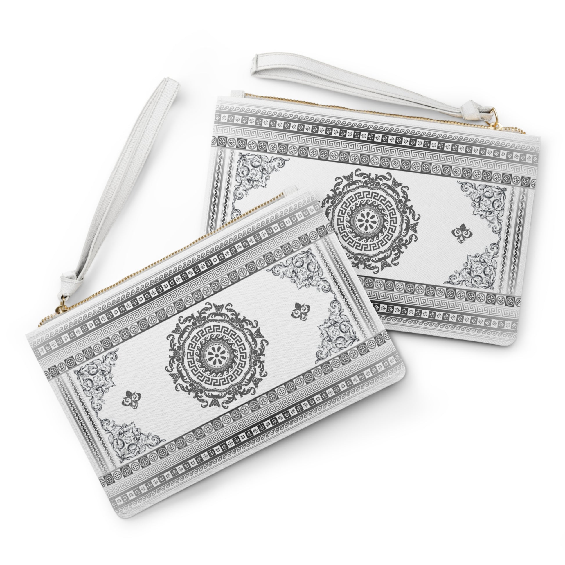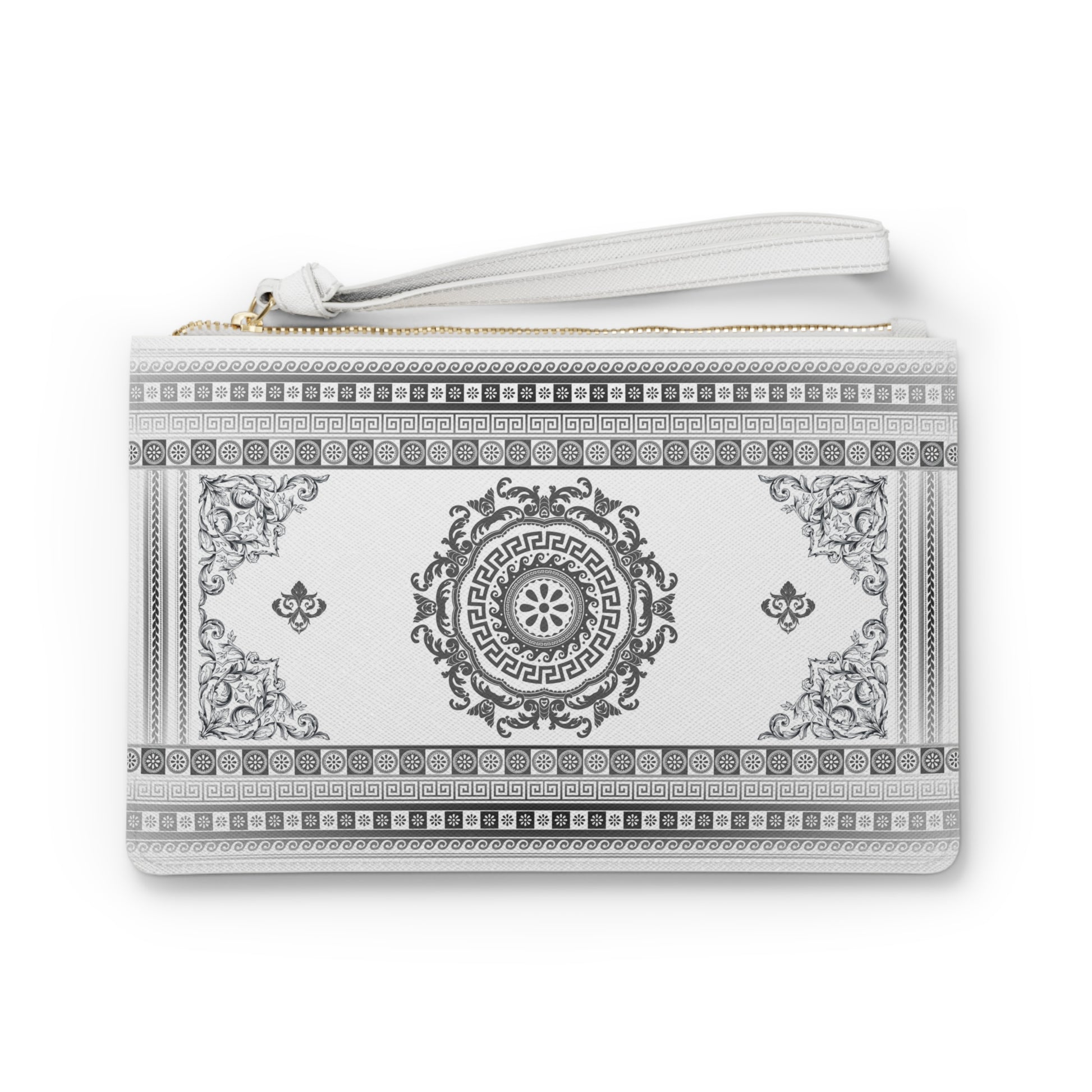 Greek Key Grey White Vegan Leather Clutch Bag