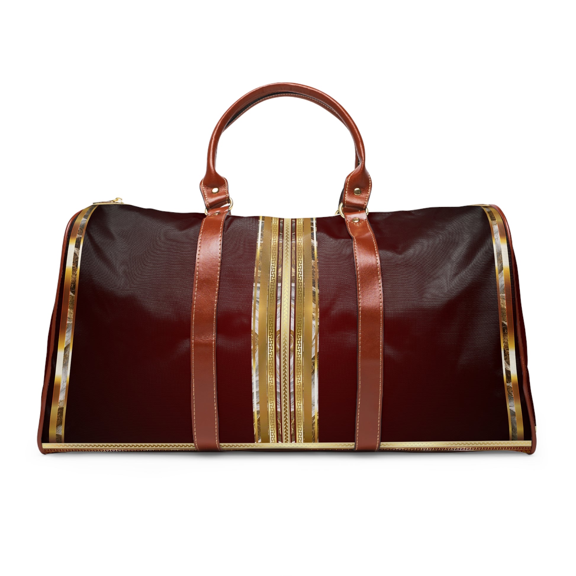 Greek Key Maroon Gold Stone Pattern Waterproof Travel Bag