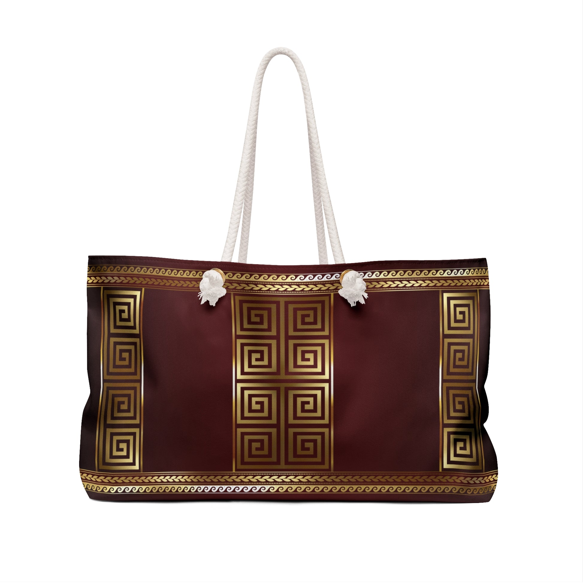 Greek Key Maroon Gold Weekender Bag