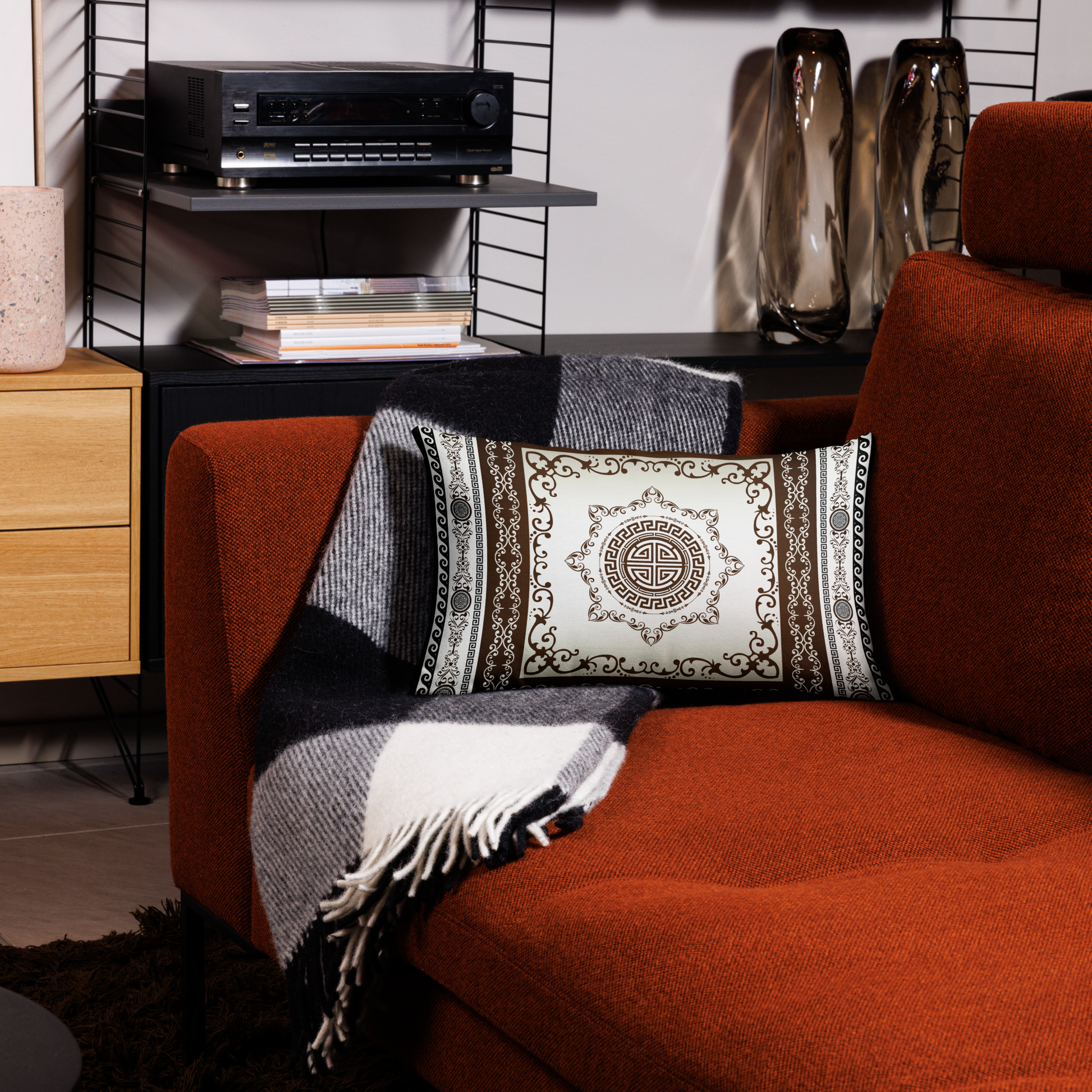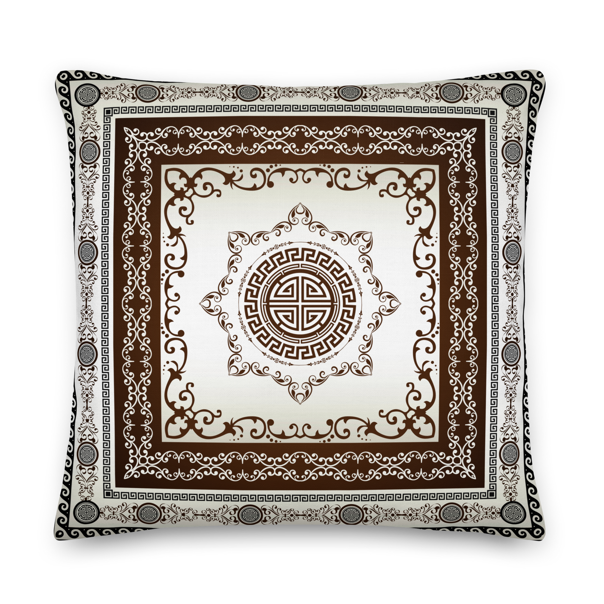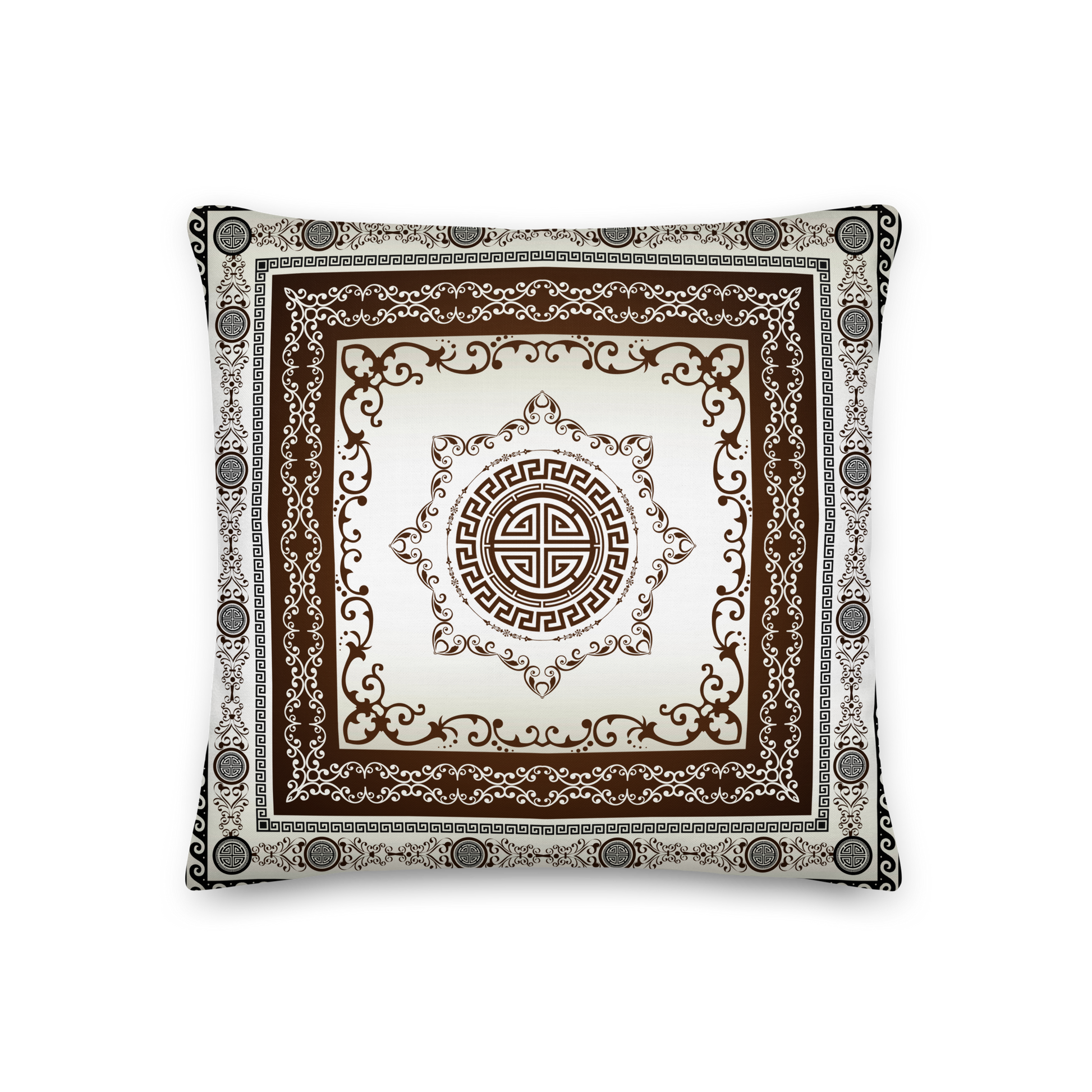Greek Key Maroon Khaki Ornate Premium Pillow