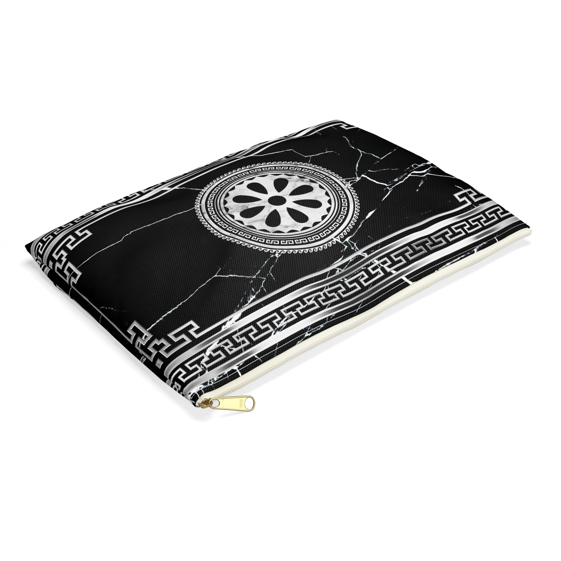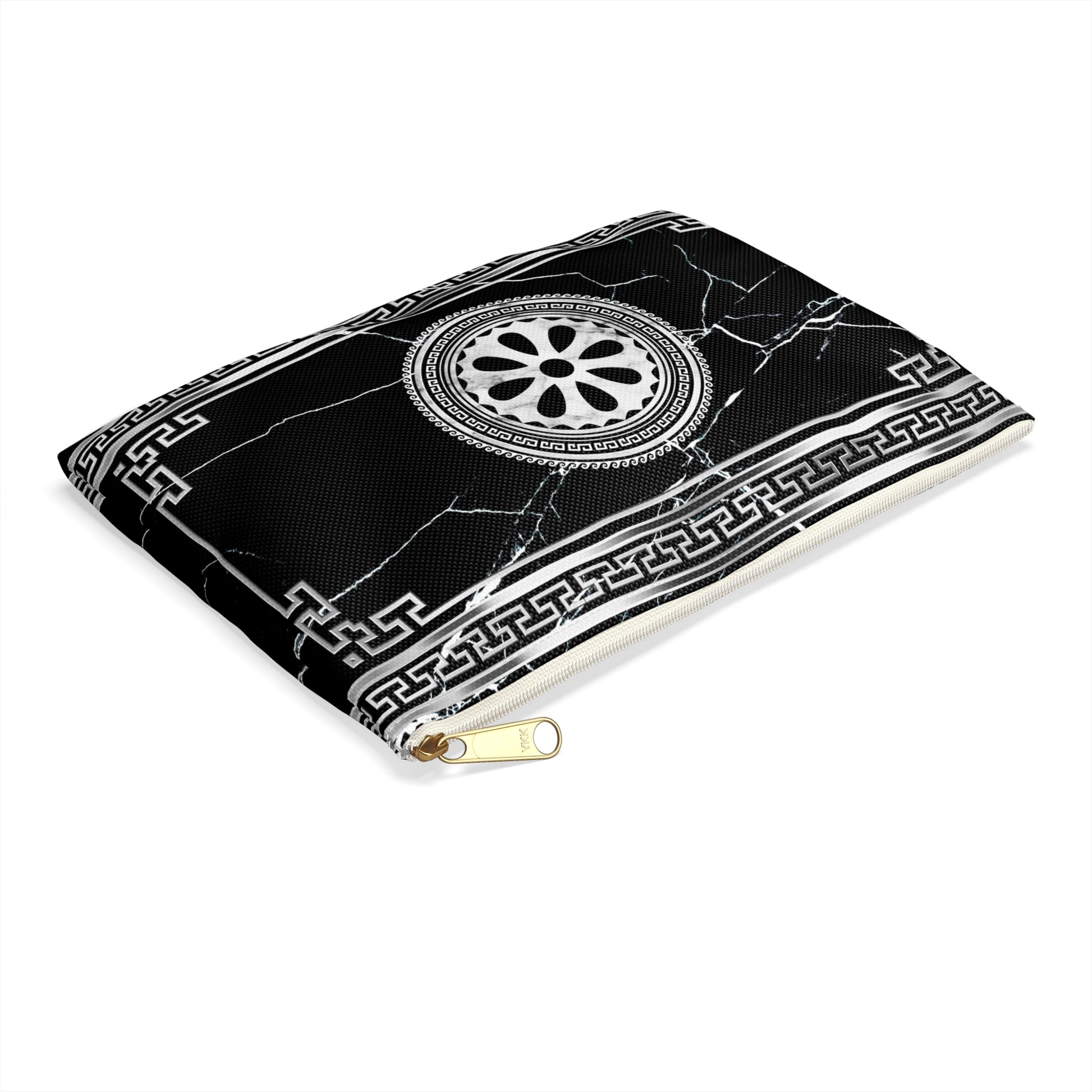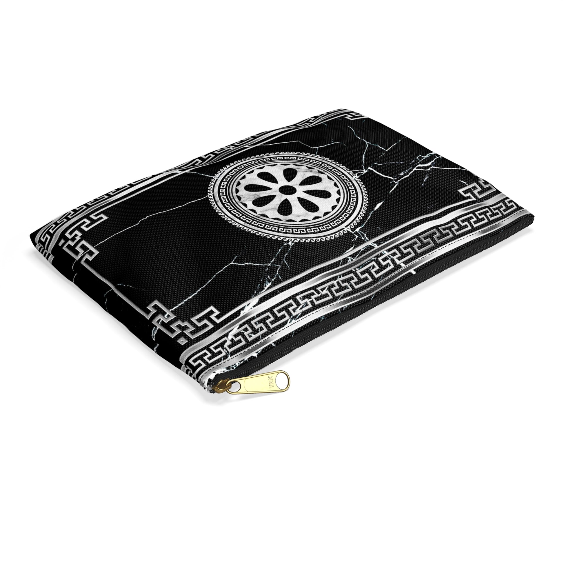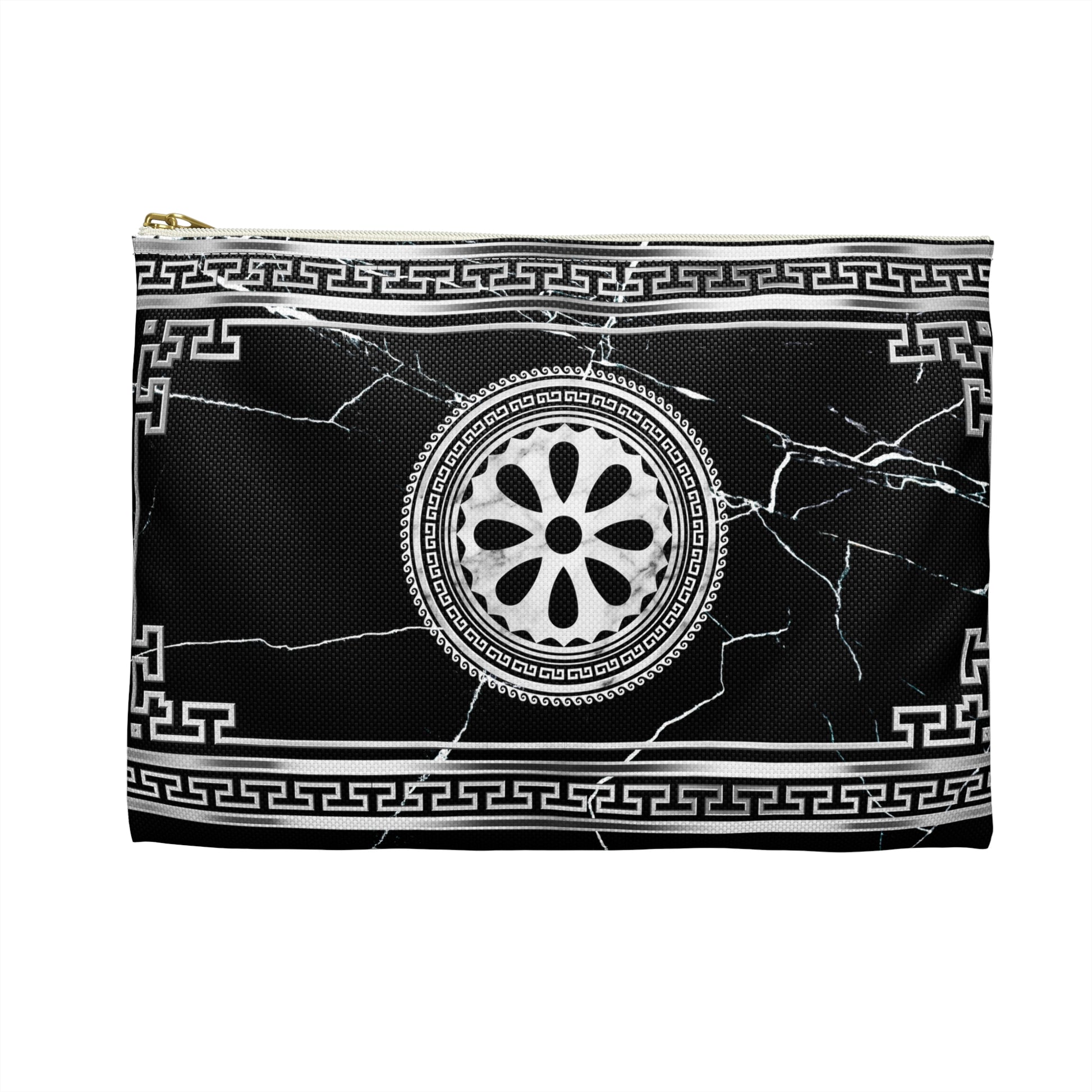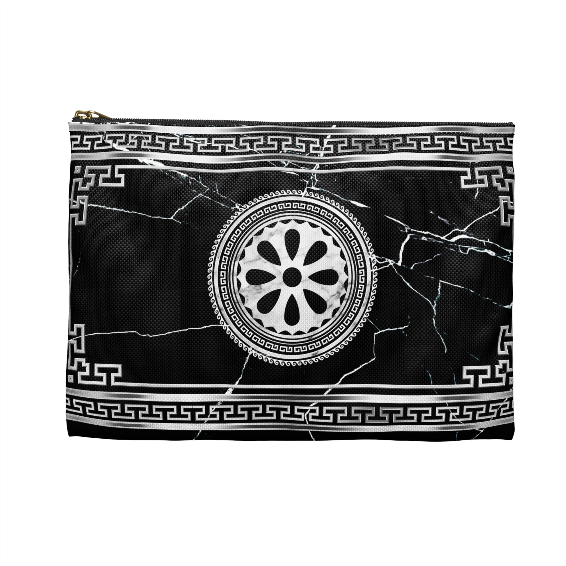 Greek Key Silver Black Marbleized Accessory Pouch