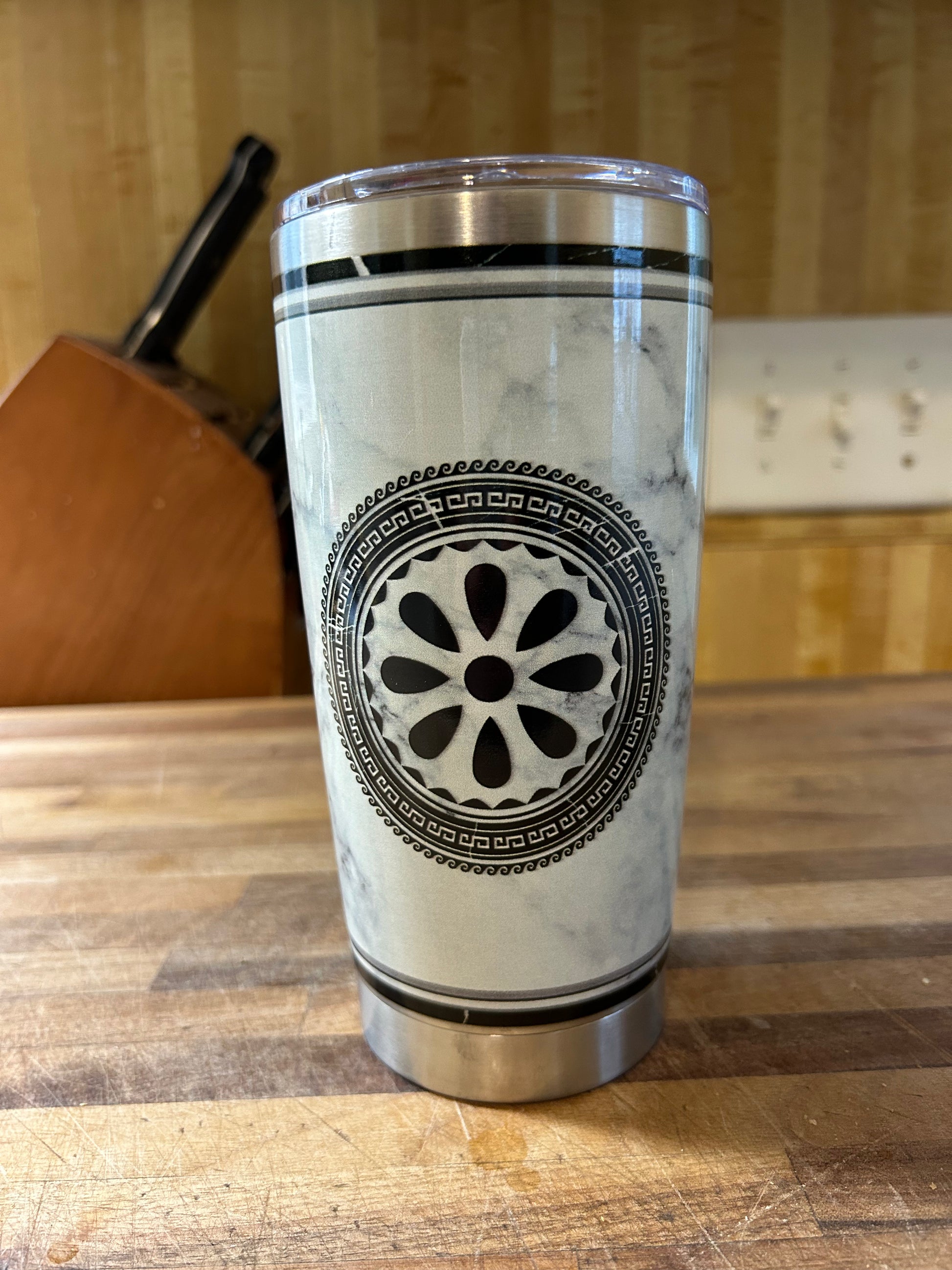 Greek Key Silver Black Marbleized Vagabond 20oz Tumbler