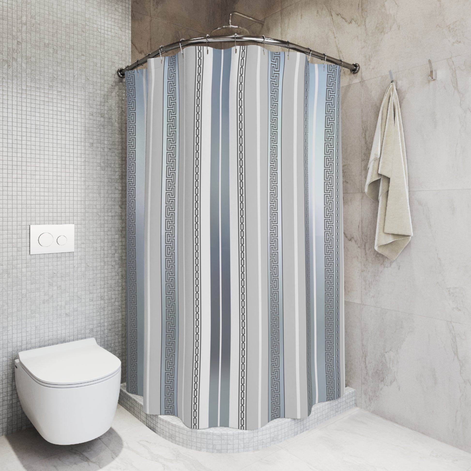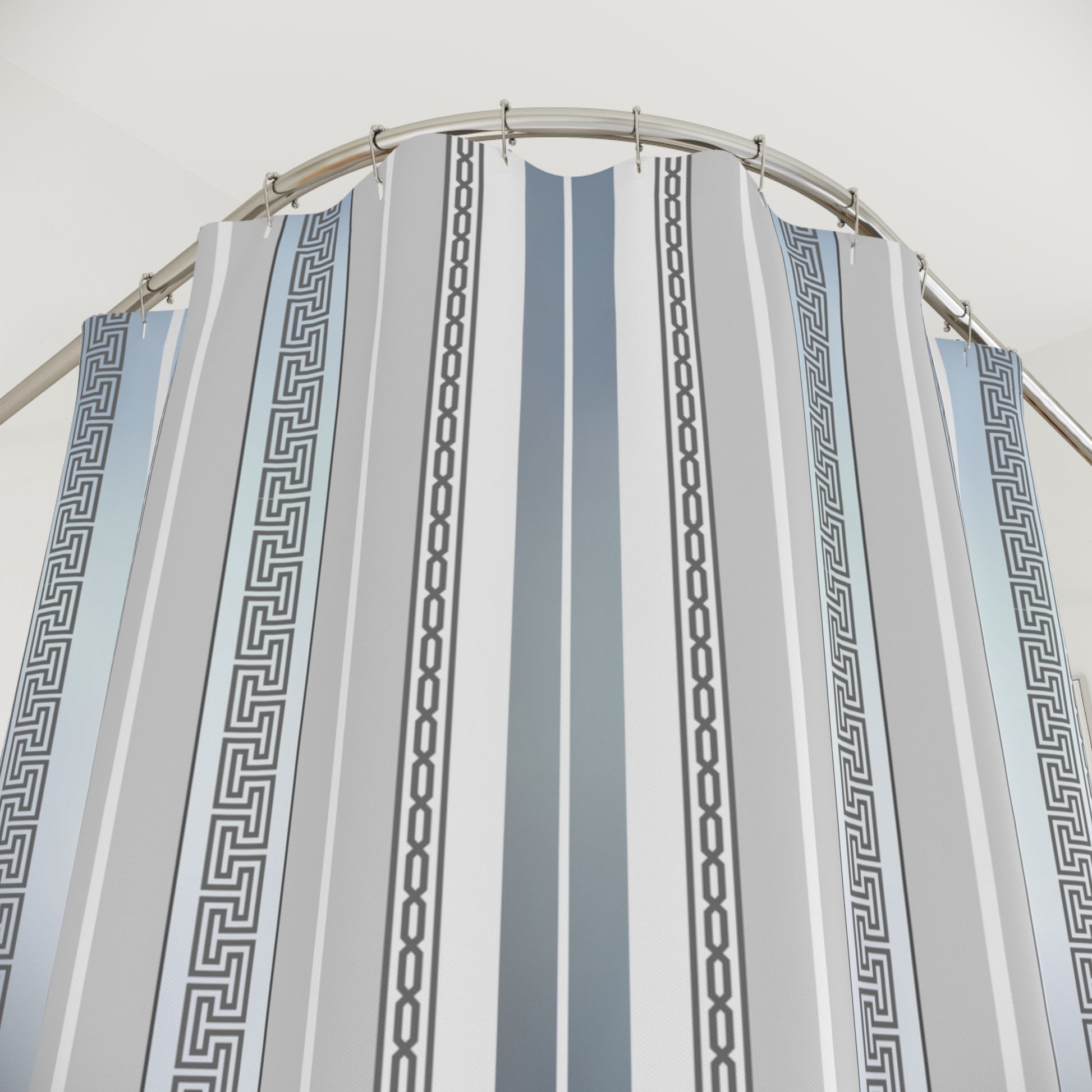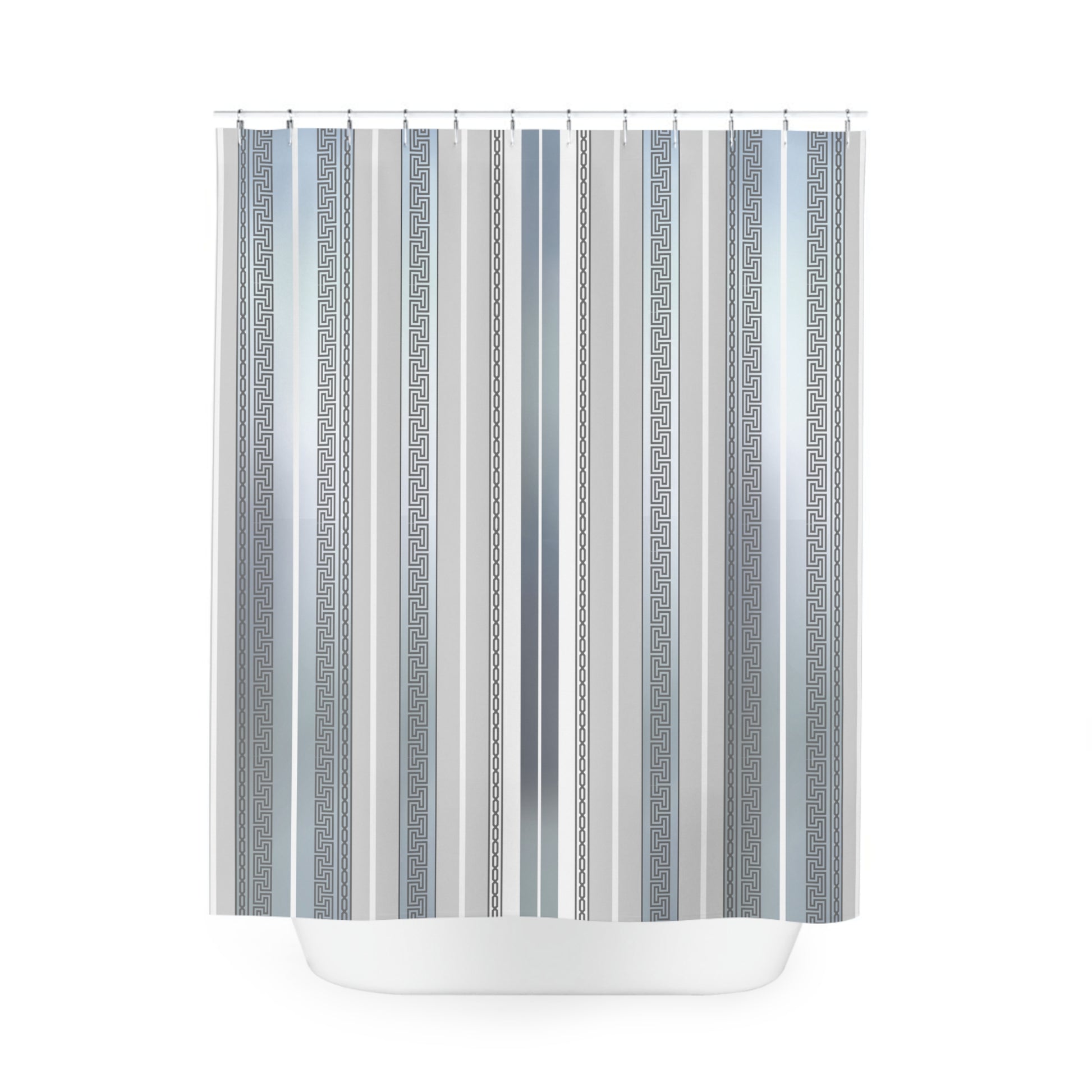 Greek Key Silver White Gray Polyester Shower Curtain