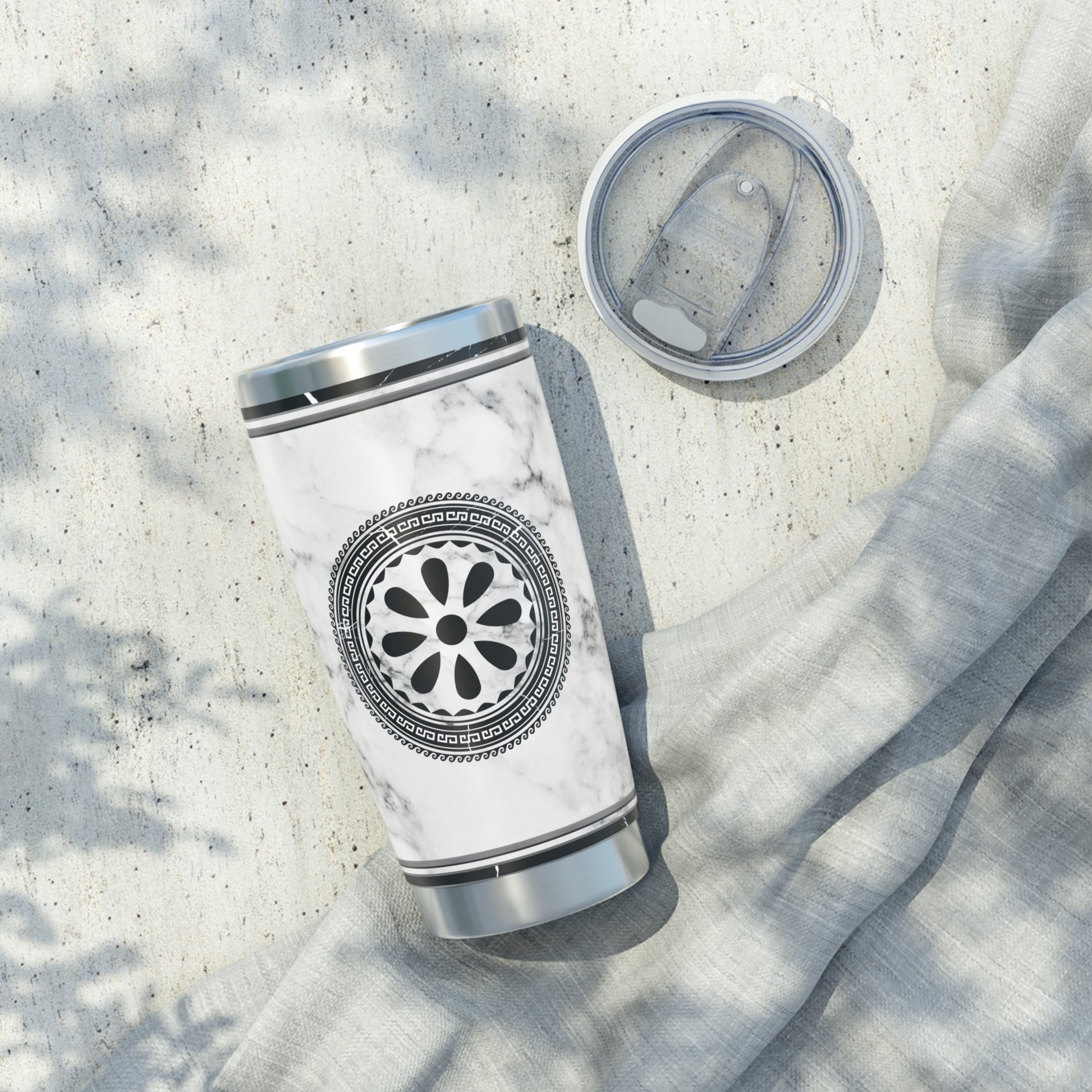 Greek Key White Marbleized Flower Vagabond 20oz Tumbler
