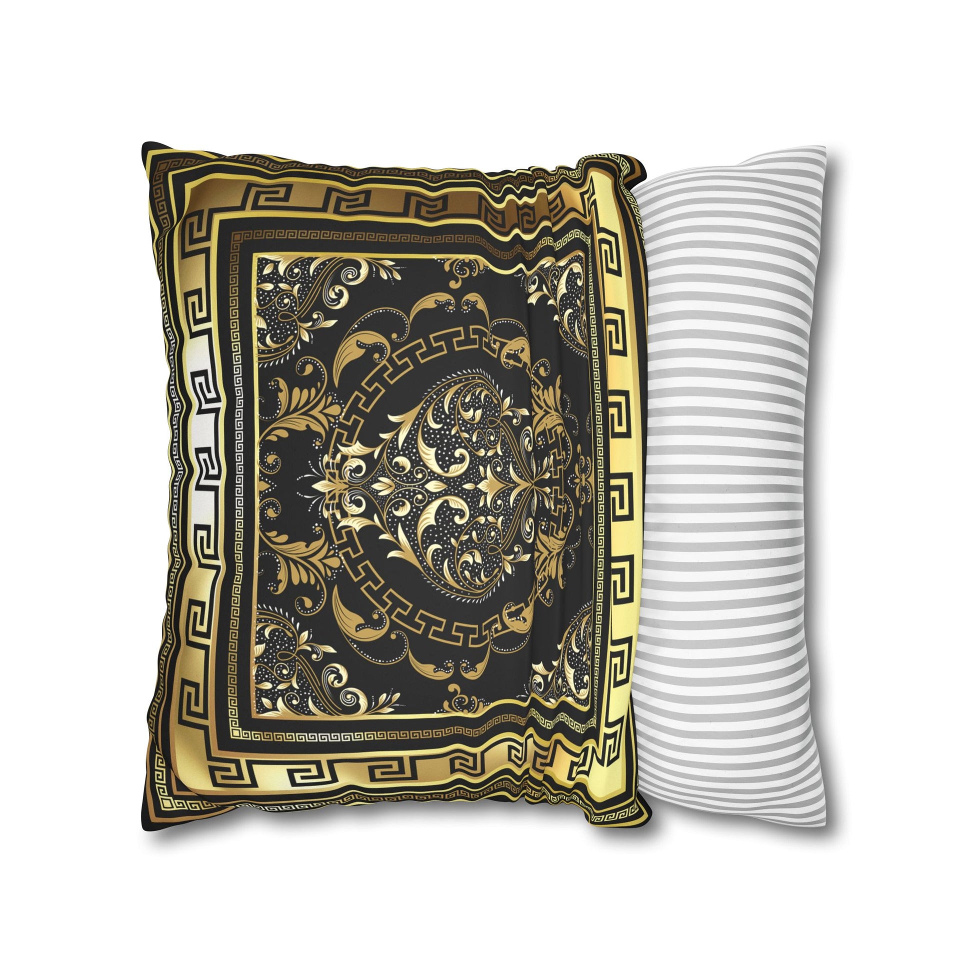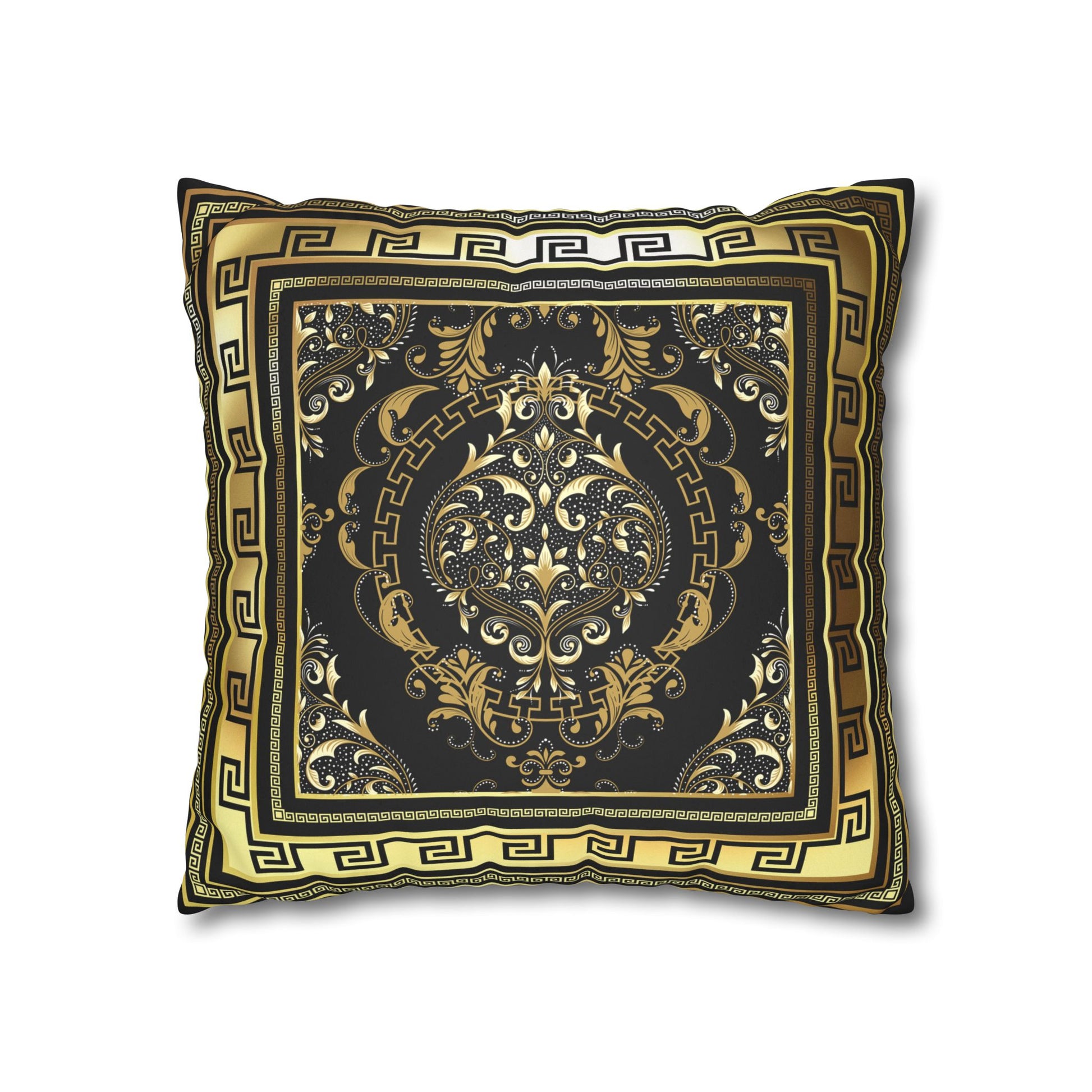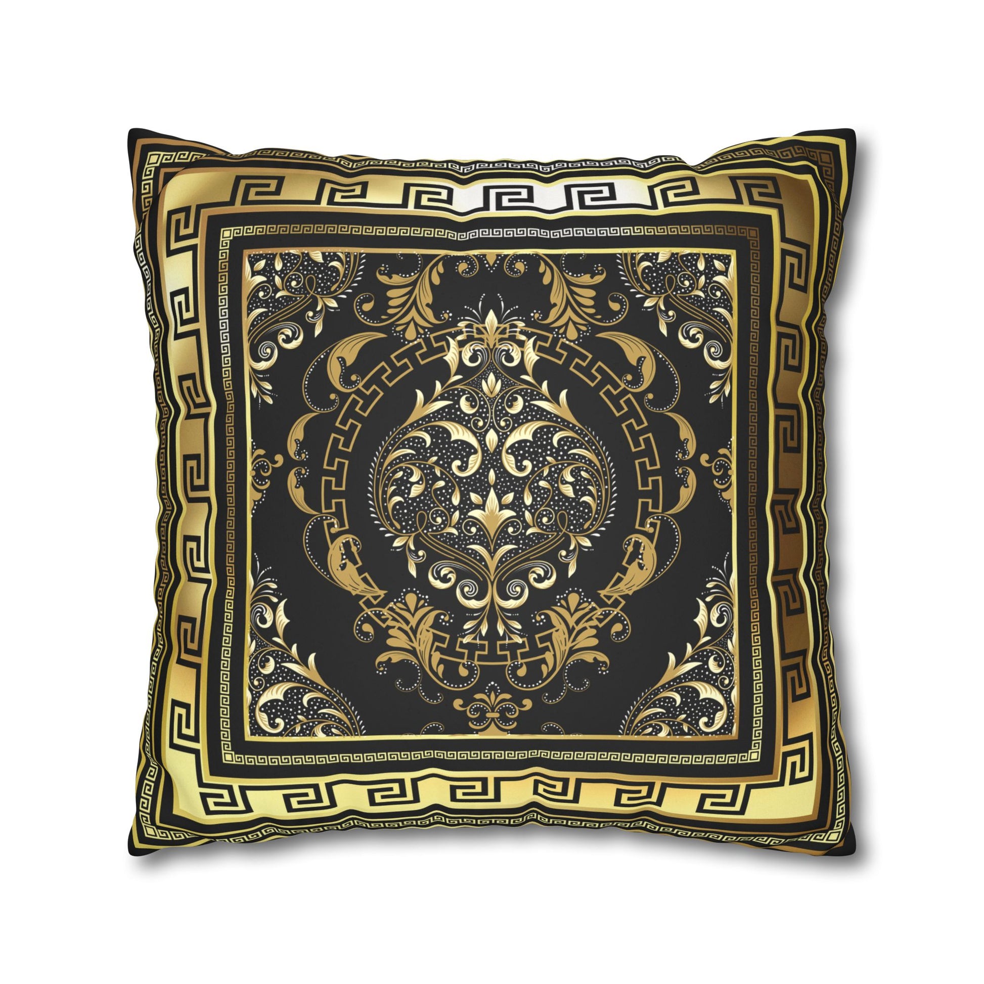 Greek Keys Gold Black Faux Suede Square Pillow Case