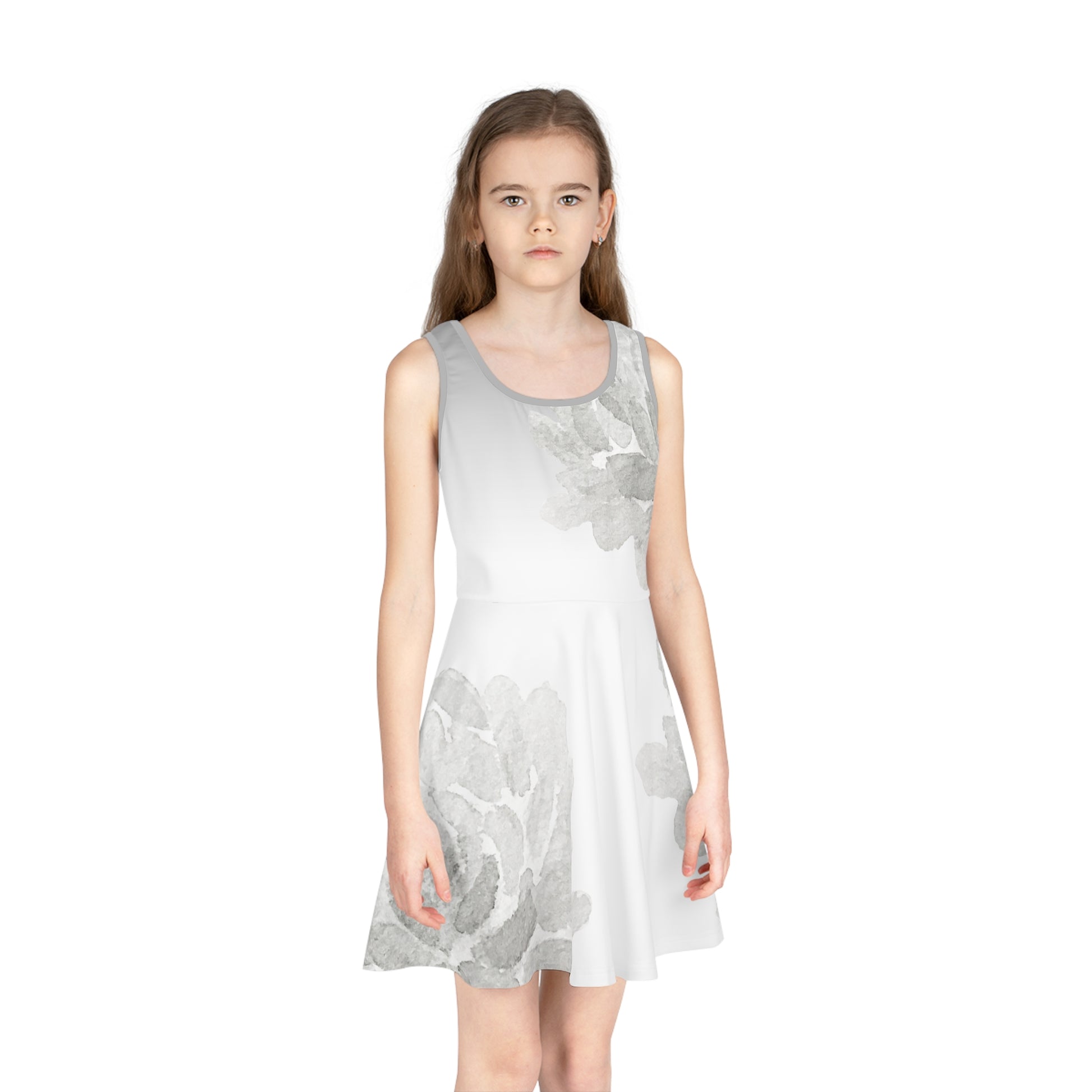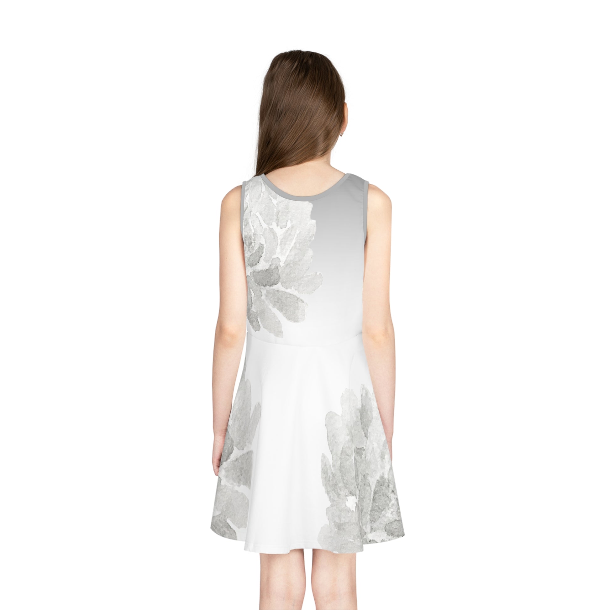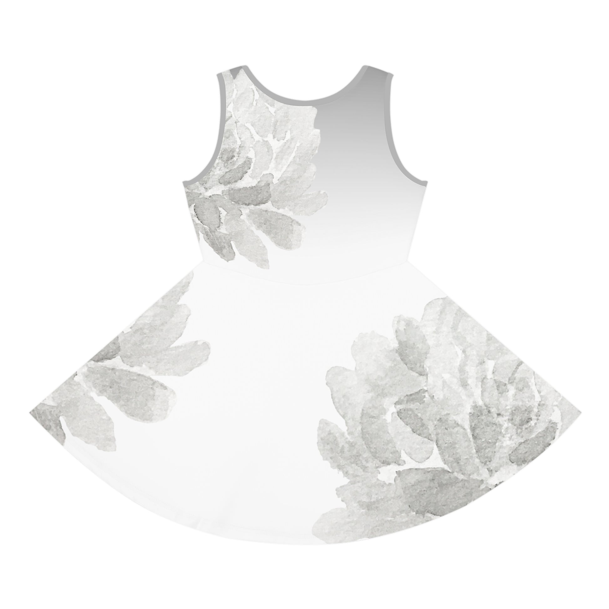 White Gray Floral Girls' Sleeveless Sundress Kiki Collection